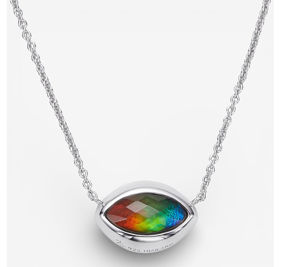Refined yet eye‑catching, this sterling silver marquise ammolite statement pendant necklace is a stunning showcase of natural colour and modern elegance. At its centre, a beautifully faceted marquise‑shaped ammolite is bezel set to highlight its captivating flashes of vibrant, ever‑changing hues. Finished in sleek rhodium plating, the sterling silver setting enhances the gemstone’s brilliance while offering a polished, contemporary look that elevates any outfit. Designed for effortless wear, the necklace is completed with a secure lobster claw clasp for everyday confidence.