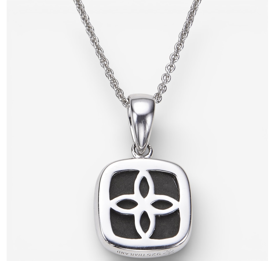Discover effortless elegance in a beautifully proportioned design with this sterling silver 10mm cushion shape ammolite pendant with chain from Canadian Ammolite Gems. Showcasing a beautifully faceted ammolite, this pendant captures the gemstone’s signature flashes of vibrant, iridescent colour; each piece naturally unique and endlessly captivating. Rhodium‑plated sterling silver enhances the brilliance of the stone while providing a sleek, contemporary finish, complemented by a smooth side and under gallery for refined comfort. Timeless, radiant, and rich with natural beauty, this pendant is a stunning way to showcase one of Canada’s rarest gemstone treasures.