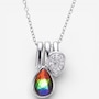 Sterling Silver 9 mm x 6 mm Teardrop Ammolite and White Topaz Pendant with Chain