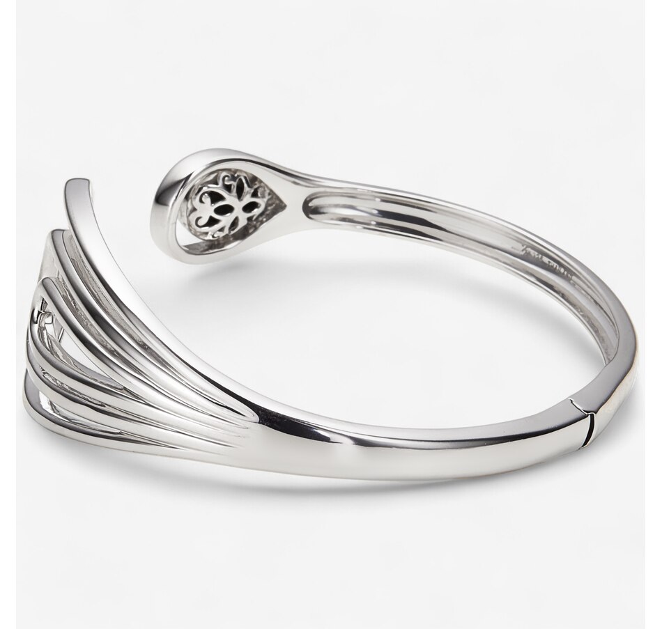 Sterling Silver Pear Ammolite Hinged Cuff Bangle