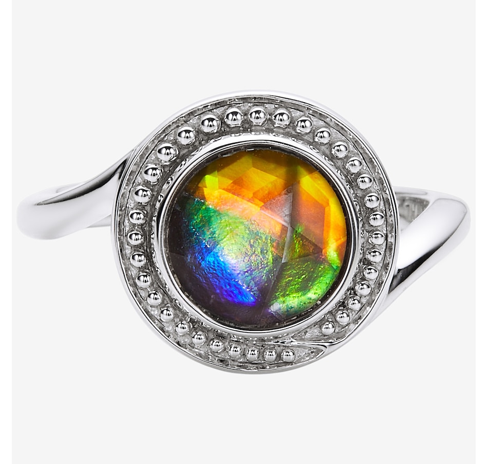 Canadian Ammolite Gems Sterling Silver Rhodium Plate Ammolite Ring