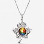 Sterling Silver Rhodium Plate Round Ammolite Leaf Pendant