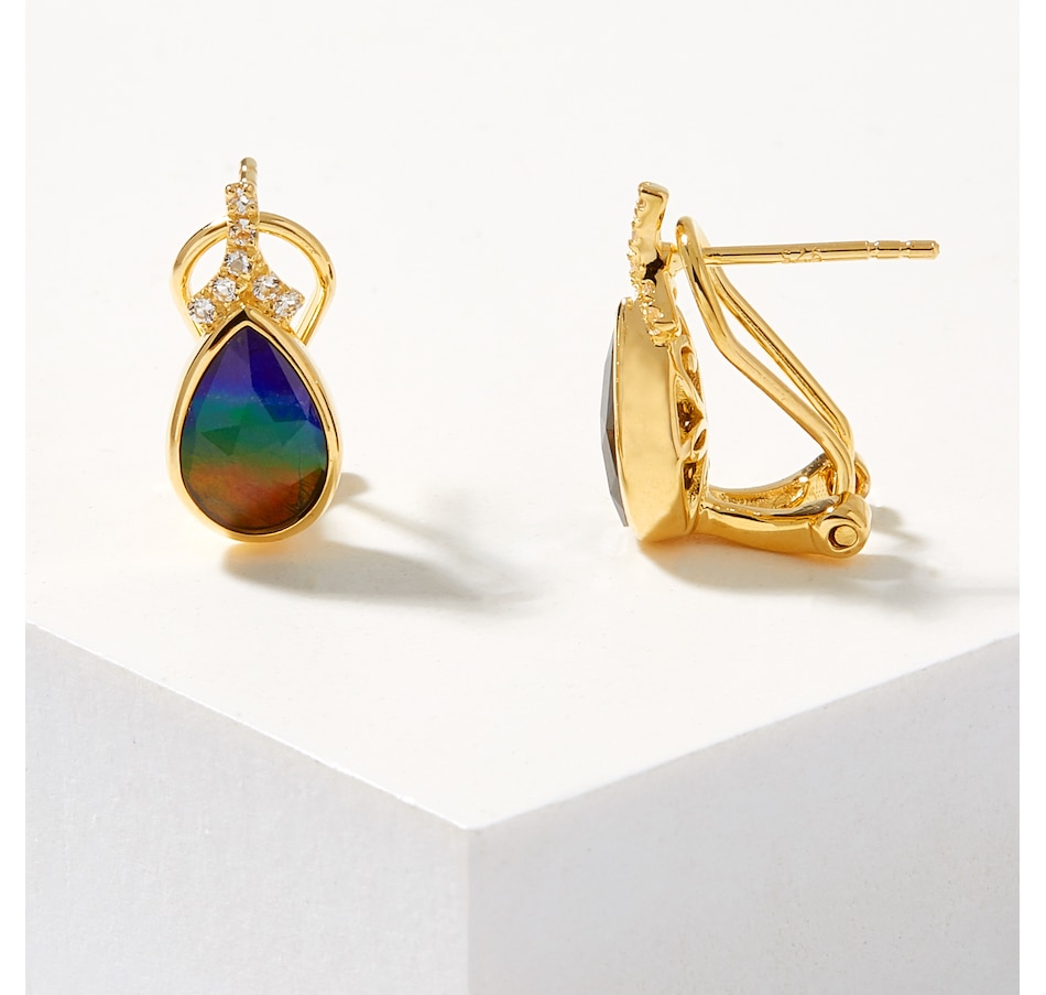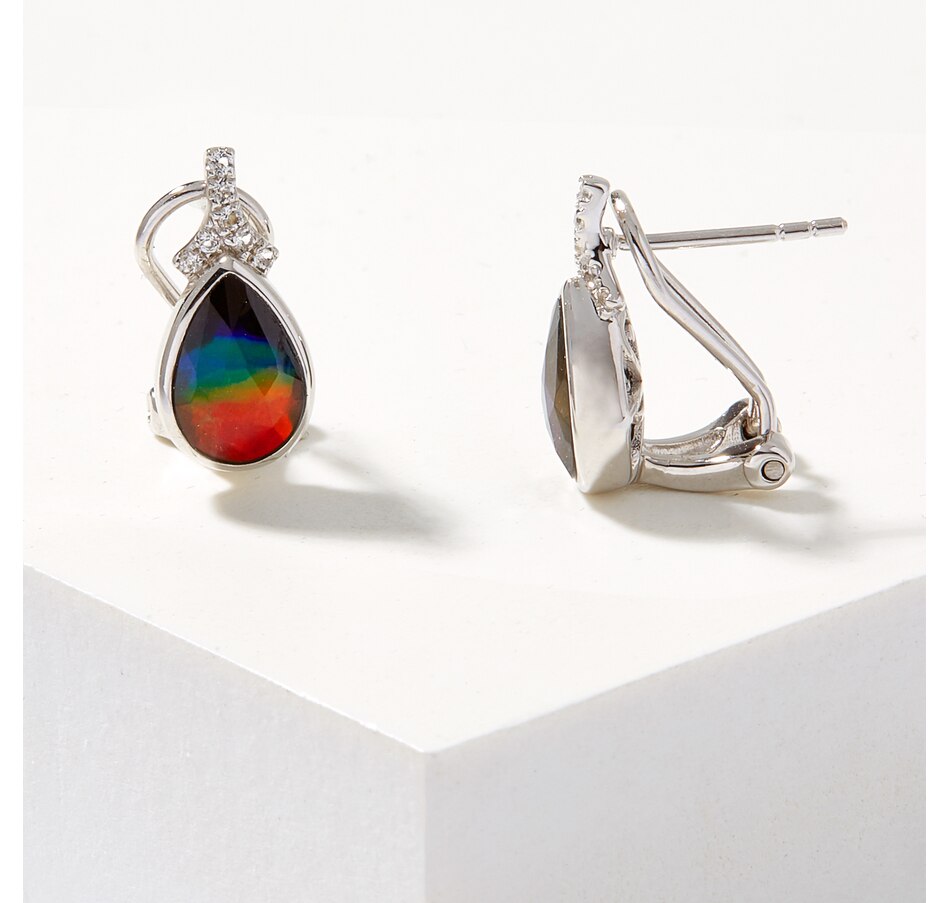 Sterling Silver Teardrop Ammolite & White Topaz Sweetheart Earrings