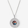 Sterling Silver/Rhodium Plated 8mm Round Studded Ammolite Saddle Pendant