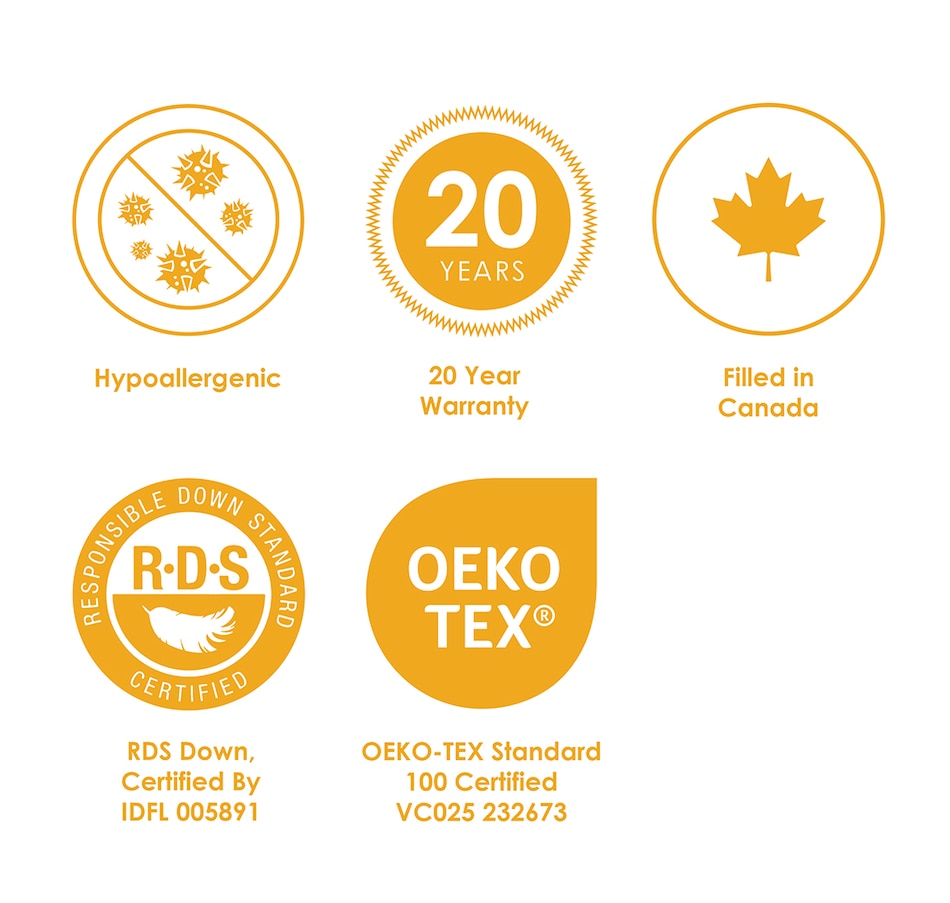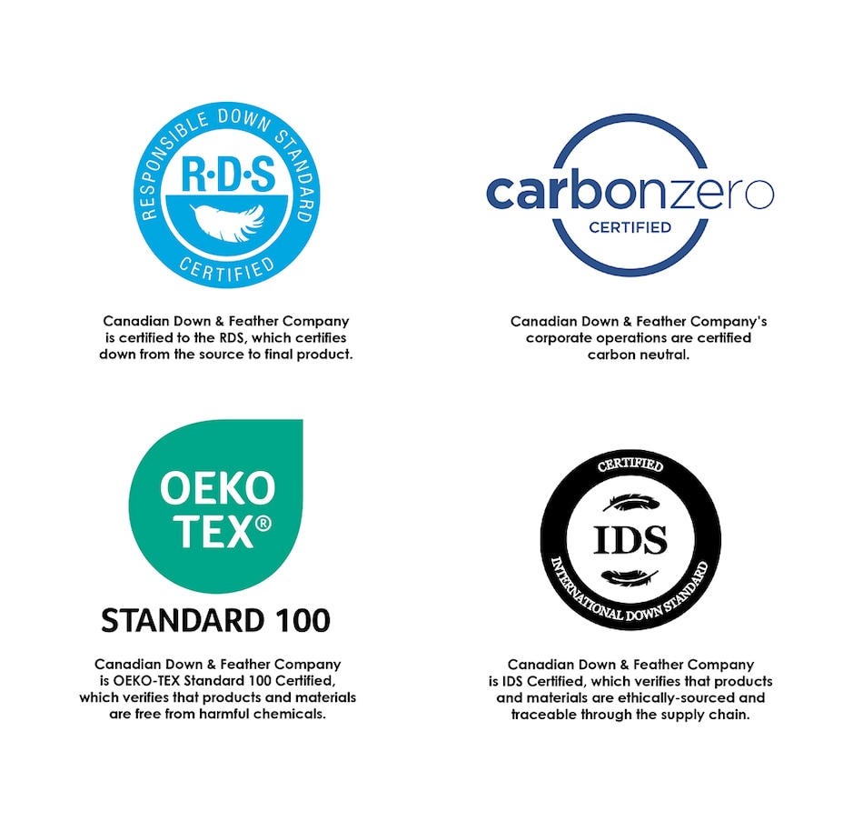 This duvet is filled with care in Canada. The down-proof cotton shell is a soft 360-thread count, and the duvet is filled with quality, ethically sourced 650-loft goose down. The down fill is soft and luxurious, made up of tiny, fluffy clusters and makes for light, yet high performance duvets.