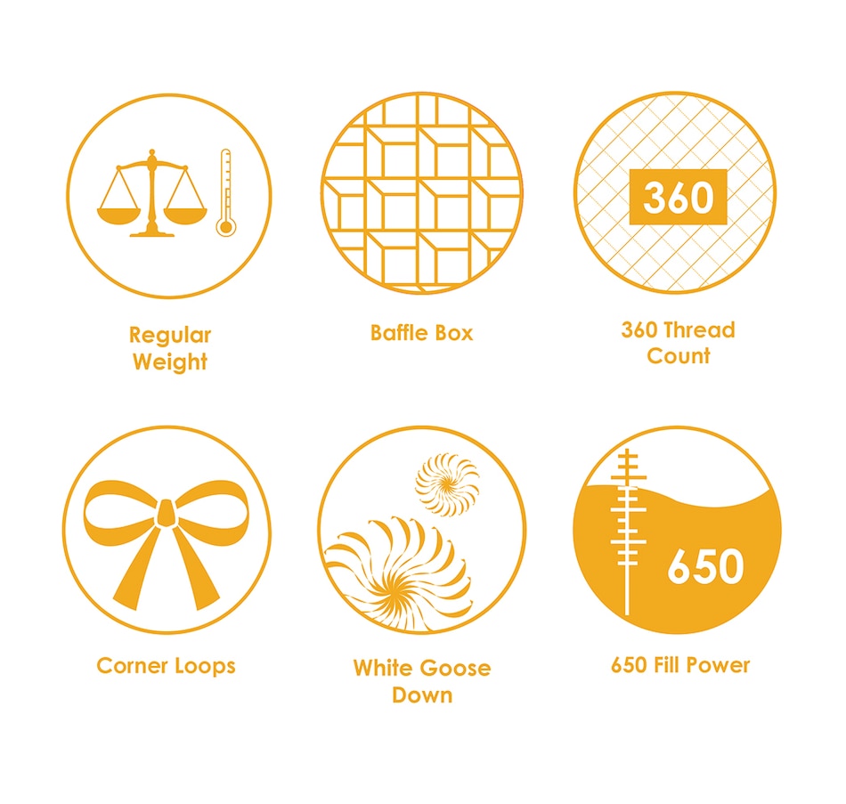• Baffle box construction is made of baffle walls for maximum loft, and a box to prevent content from shifting