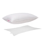 This pillow is filled with quality, ethically sourced 550 loft white down, and the shell is crisp, 260-thread-count down-proof cotton. Down is fluffy, light and delicate and it makes for pillows that are soft, sinky and malleable.