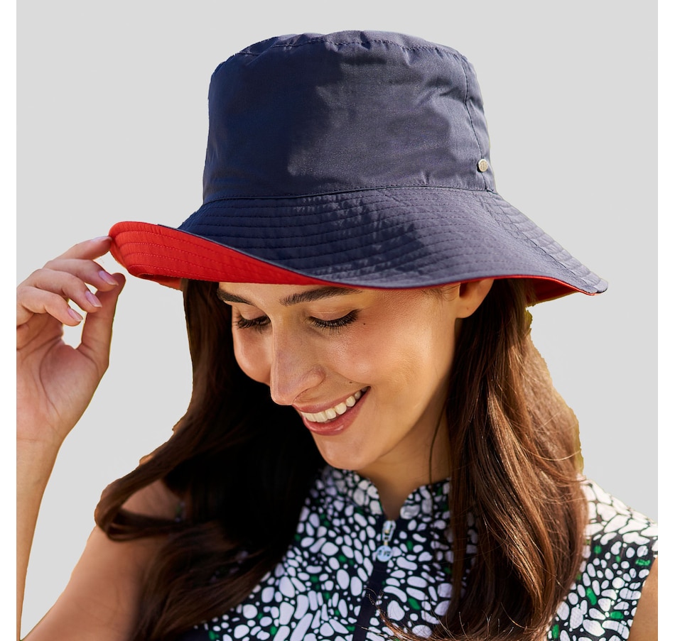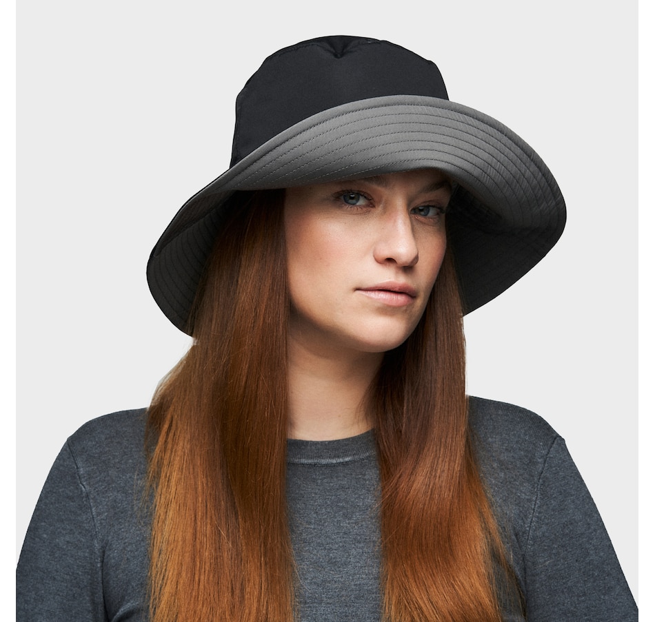 Look stylish from head to toe with this one-of-a-kind rainproof reversible winter hat! With its extra-wide brim and deep crown, it will protect your head and face from the cold wind or the harmful rays on a winter sunny day. This trendy bucket hat, made of semi-matte waterproof nylon and beautifully top stitched, is easy to care for. It's packable too, so you can throw it at the bottom of your purse without issue! It features an adjustable inner band, and is water resistant too.