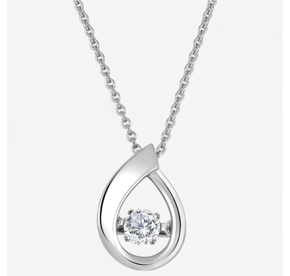 Canadian Ice 10K White Gold 0.14 ctw Diamond Teardrop Dancing Pendant With Chain