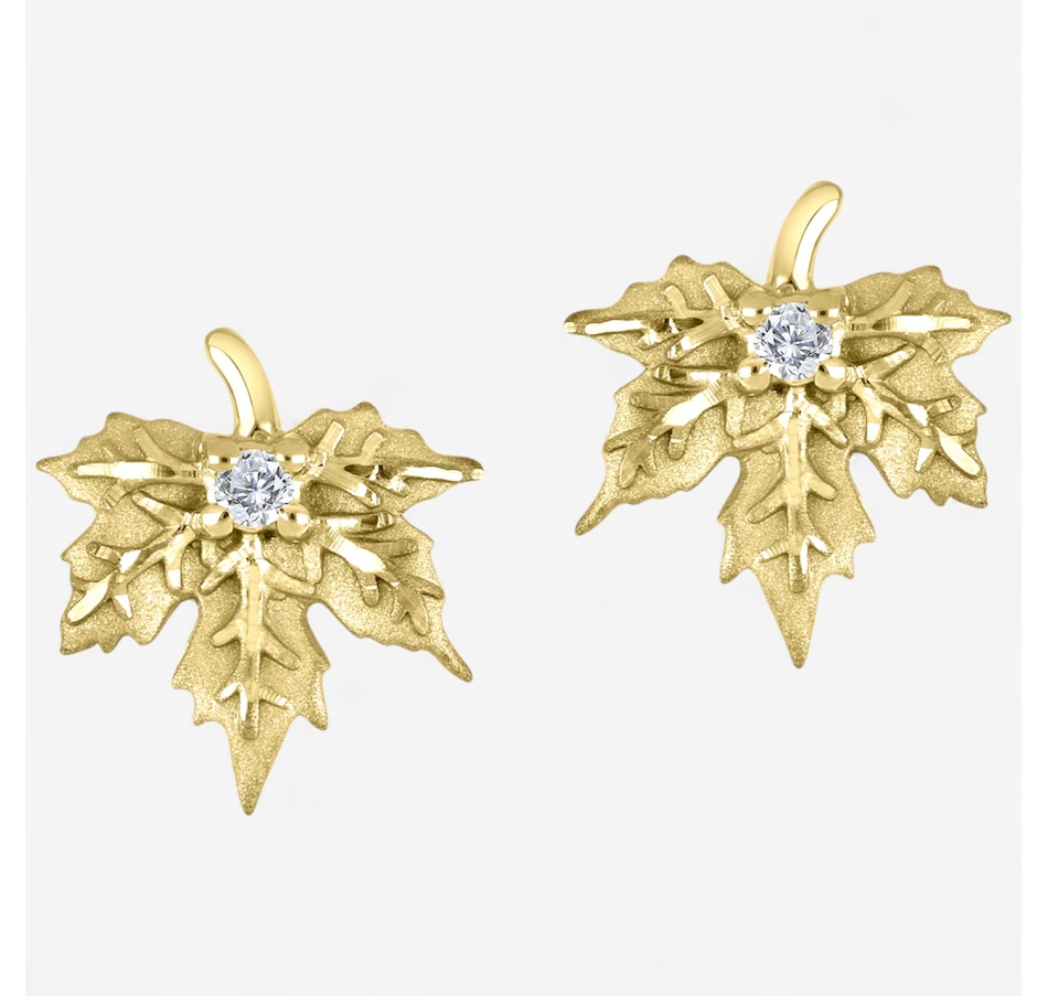 Canadian Ice 10K Yellow Gold 0.05ctw Diamond Maple Leaf Earrings