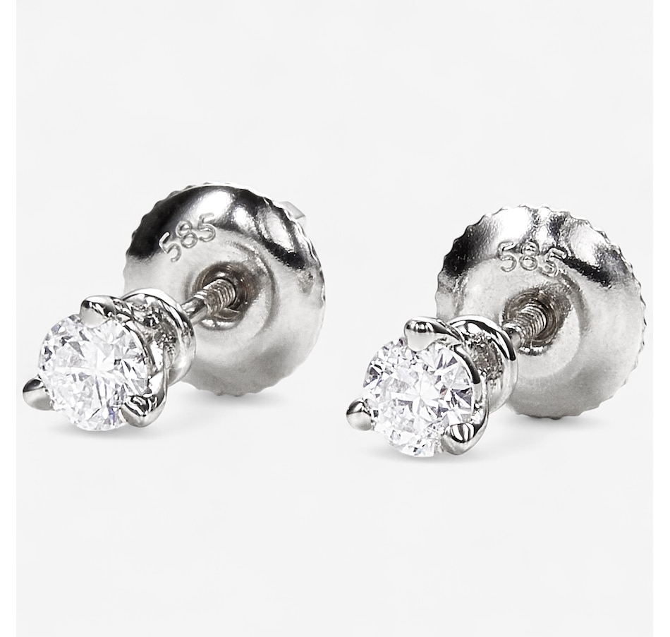 • (2) round, prong set and faceted diamonds (0.28 av.ctw)