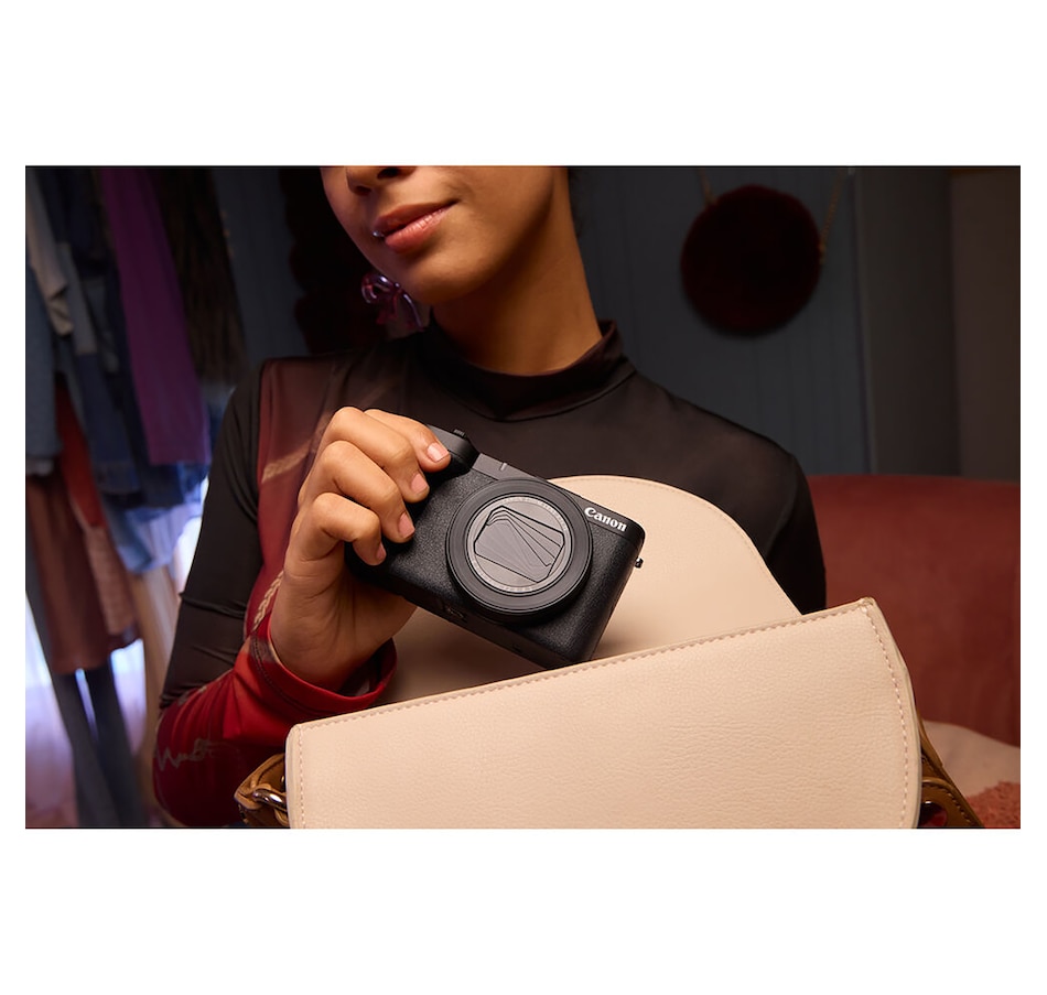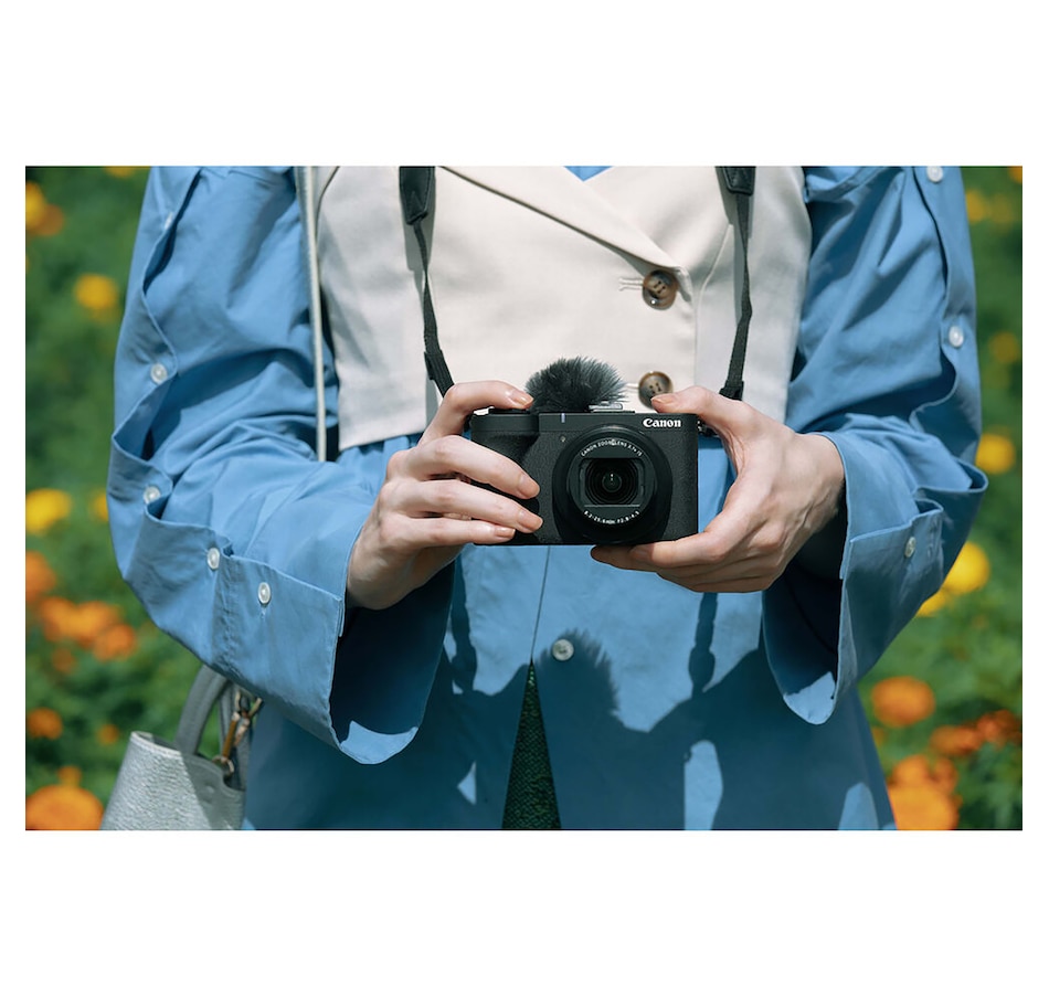 Introducing the PowerShot V1, a powerful video-first camera with all the features you are looking for with content creation, in an all-in-one design. This new sleek design features an ultra-wide-angle zoom lens, advanced autofocus, a built-in cooling fan, and impressive stabilization. The PowerShot V1 will let you focus on your creativity without worrying about time limits getting in the way of your videos.