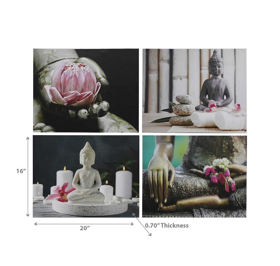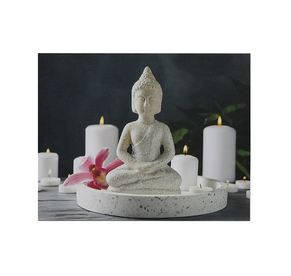 This Canvas Wall Art features a peaceful image of Zen Buddha printed with vibrant colors to make it look beautiful when hung up on the wall. This canvas painting is a perfect addition to any home or office adding a peaceful atmosphere and a unique touch to the space. Moreover, it is lightweight and easy to hang, so it can be moved around easily. The canvas material is resistant to fading and is easy to install. Design: Canvas Wall Art (Zen Buddha) (Asstd) Material: Canvas Dimension: 20 L × 0.70 W × 16 H inches Use: Ideal for room Care Tip: Spot Clean