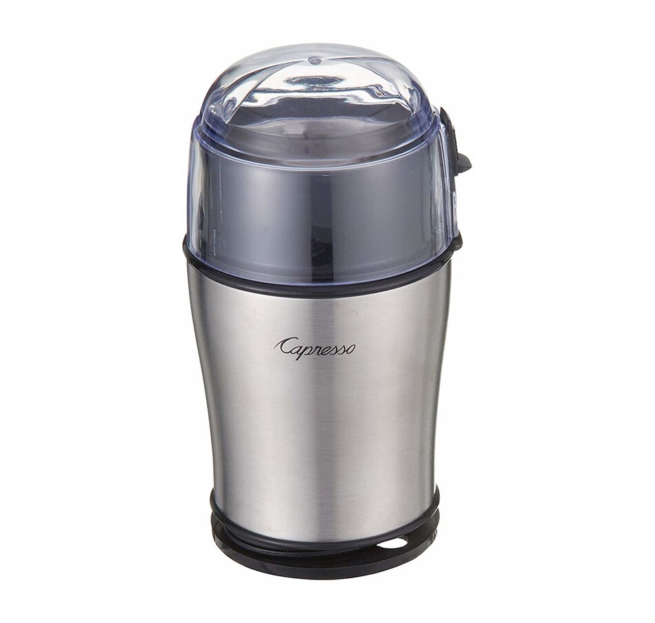 The stainless-steel blades of the Cool Grind Pro Blade Coffee Grinder from Capresso rotate at a very high speed (20,000 to 30,000 rpm) and quickly chop the coffee beans into fine particles. The longer the blades grind the coffee, the finer the coffee will become and can eventually lead to "coffee dust," so it is recommended to pulse the blade grinder in short bursts of two to three seconds so that the coffee does not get overheated while the blade is revolving. For a coarse grind, pulse for eight to 10 seconds; for medium, 10 to 15 seconds. It is not recommended to use a blade grinder for fine grinding as the consistency of the grind is not as uniform as burr grinders. This grinder is also ideal for processing herbs and spices, making it a versatile addition to any kitchen!
