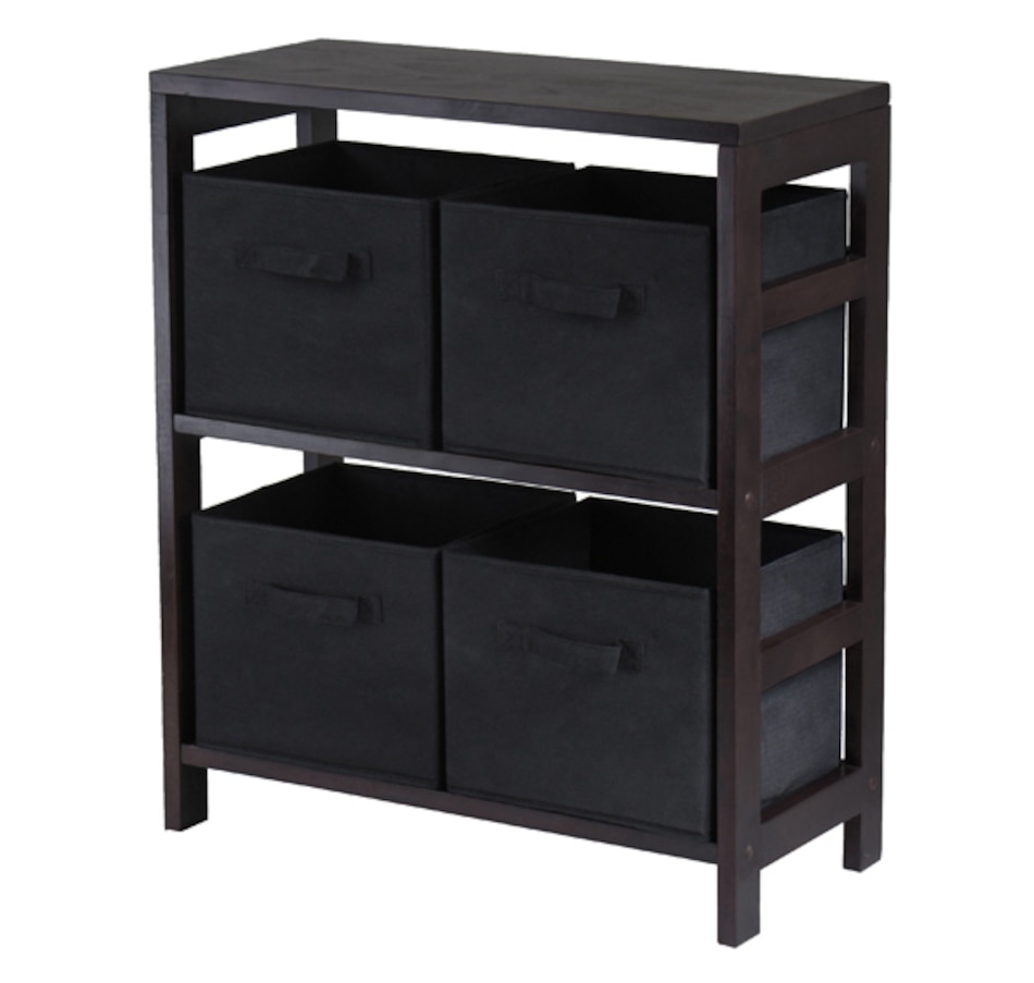 Capri 2-Section M Storage Shelf with 4 Foldable Black Fabric Baskets