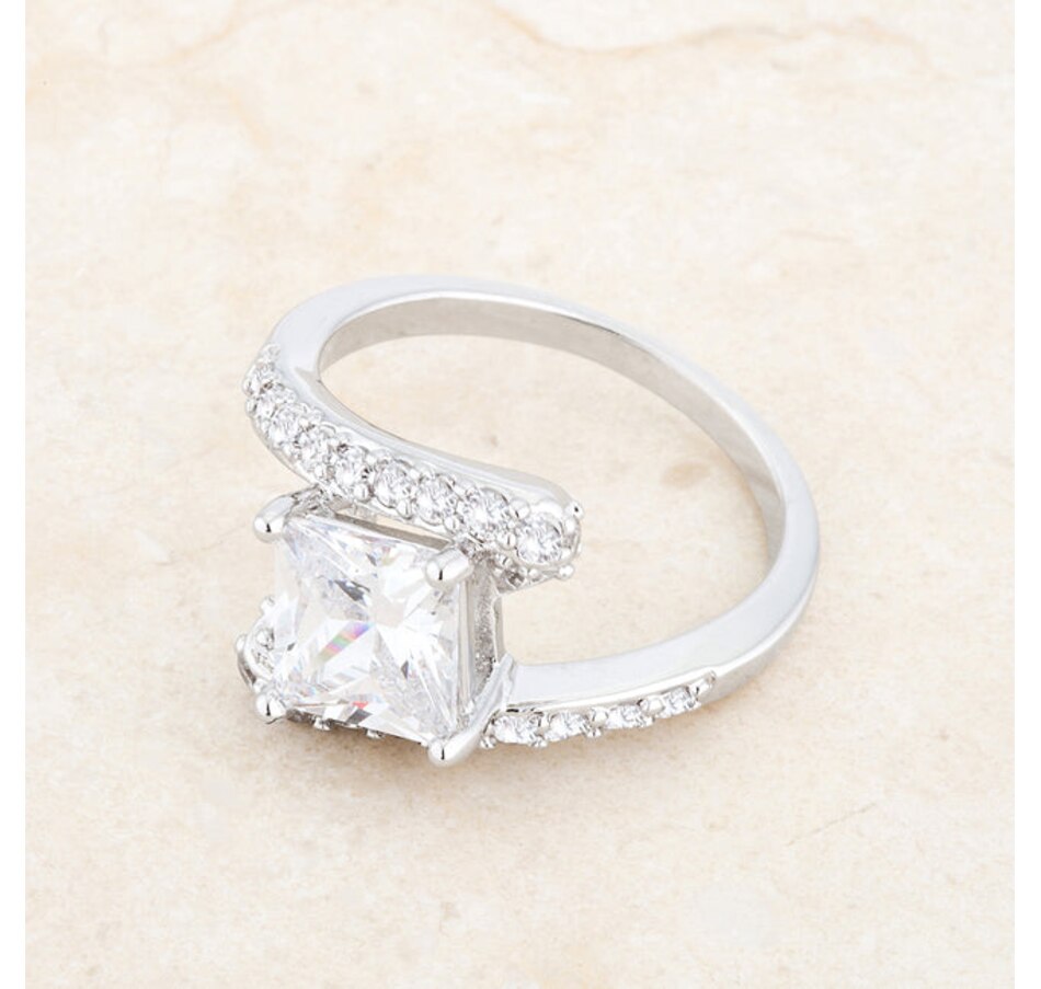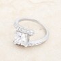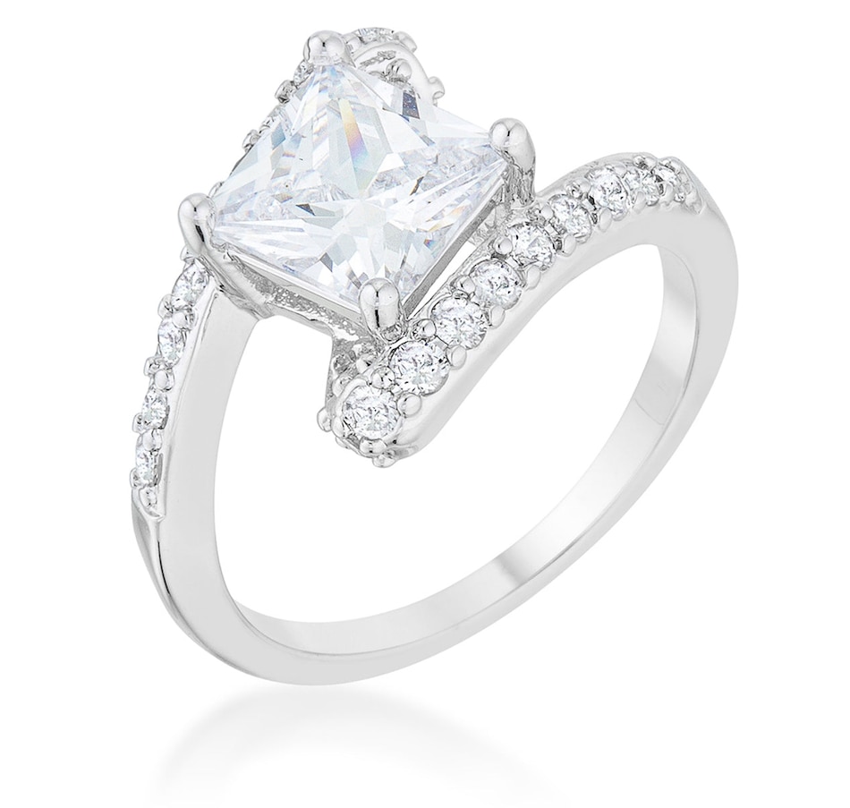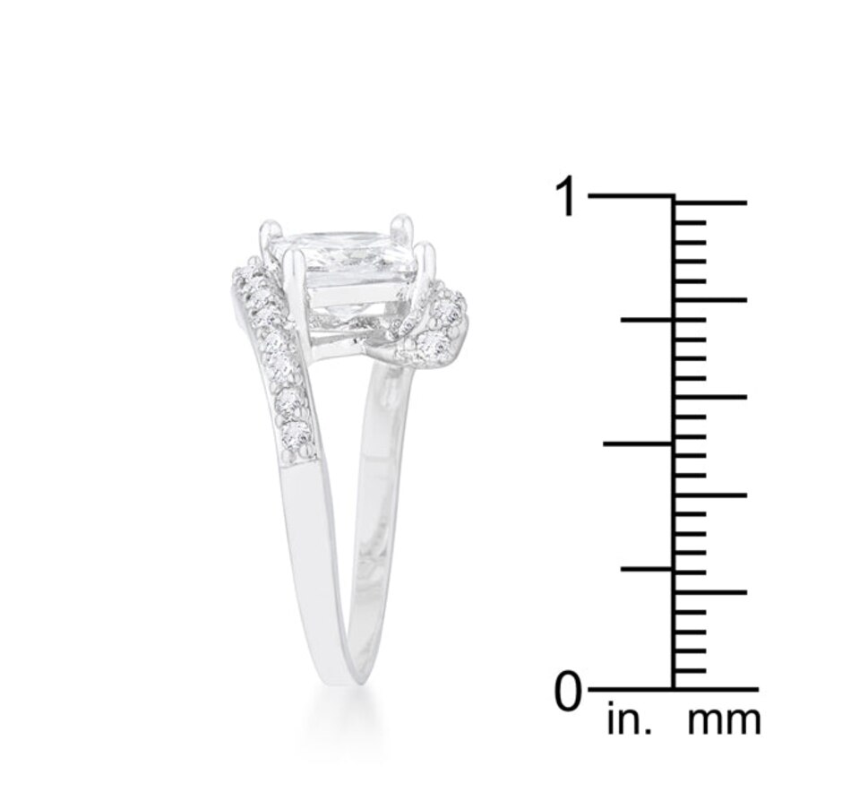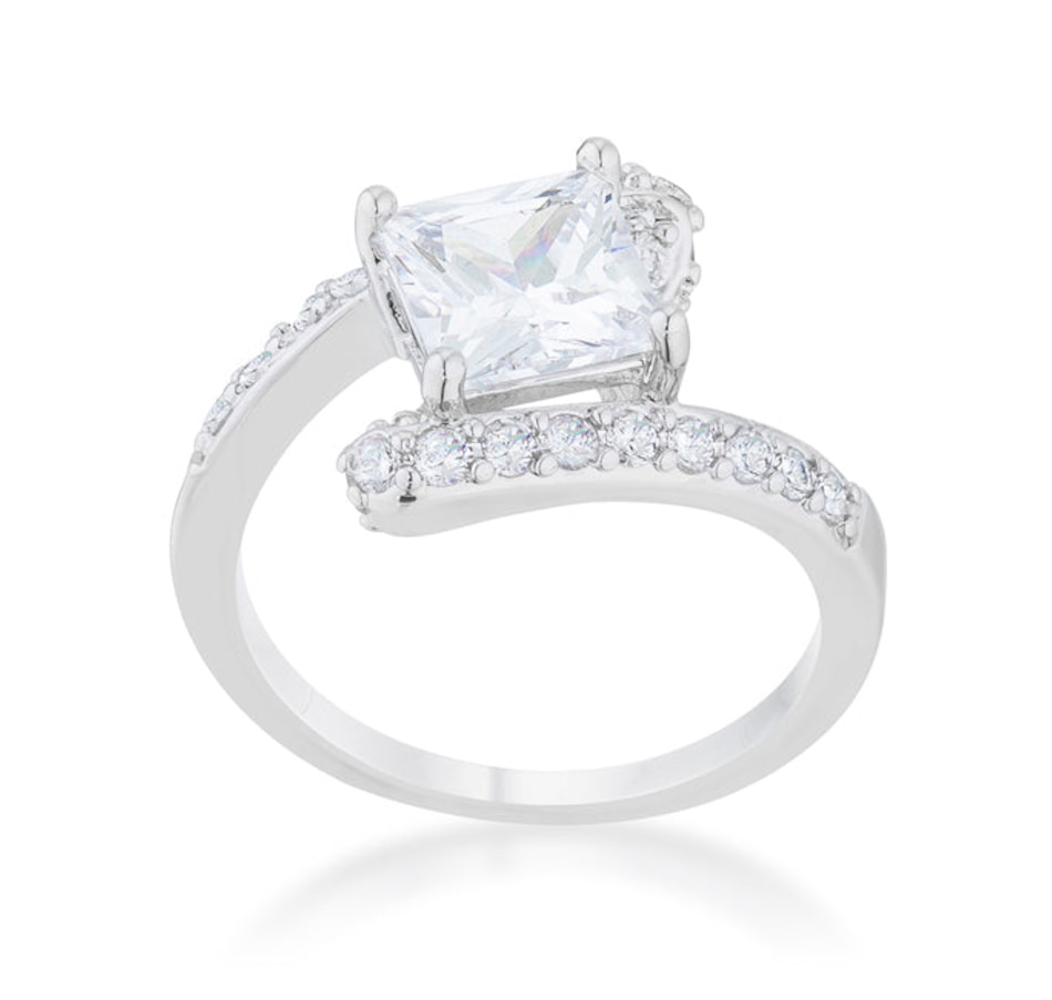 stones accent the setting of a contemporary design in this unique statement ring. Its bold design is topped off with delicate elements that make it a classically bold addition to your collection. Our genuine finish is achieved using an electroplating process that coats the item with heavy layers of a close cousin to platinum. This gives our jewelry a platinum luster.