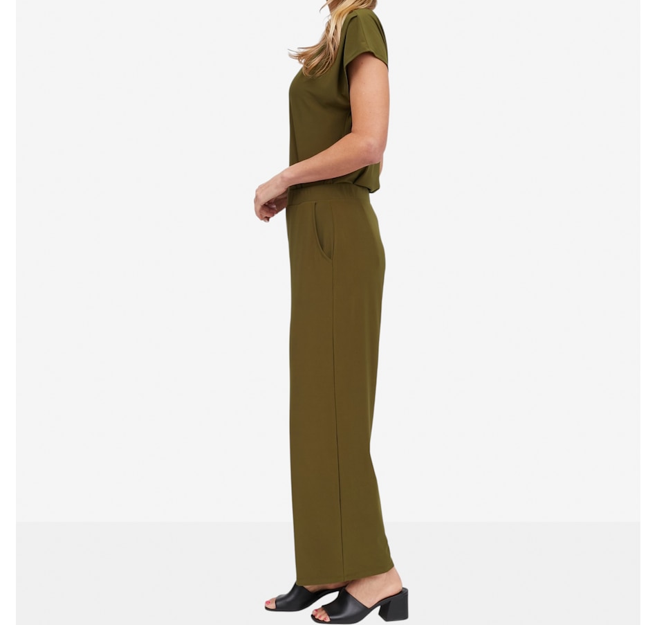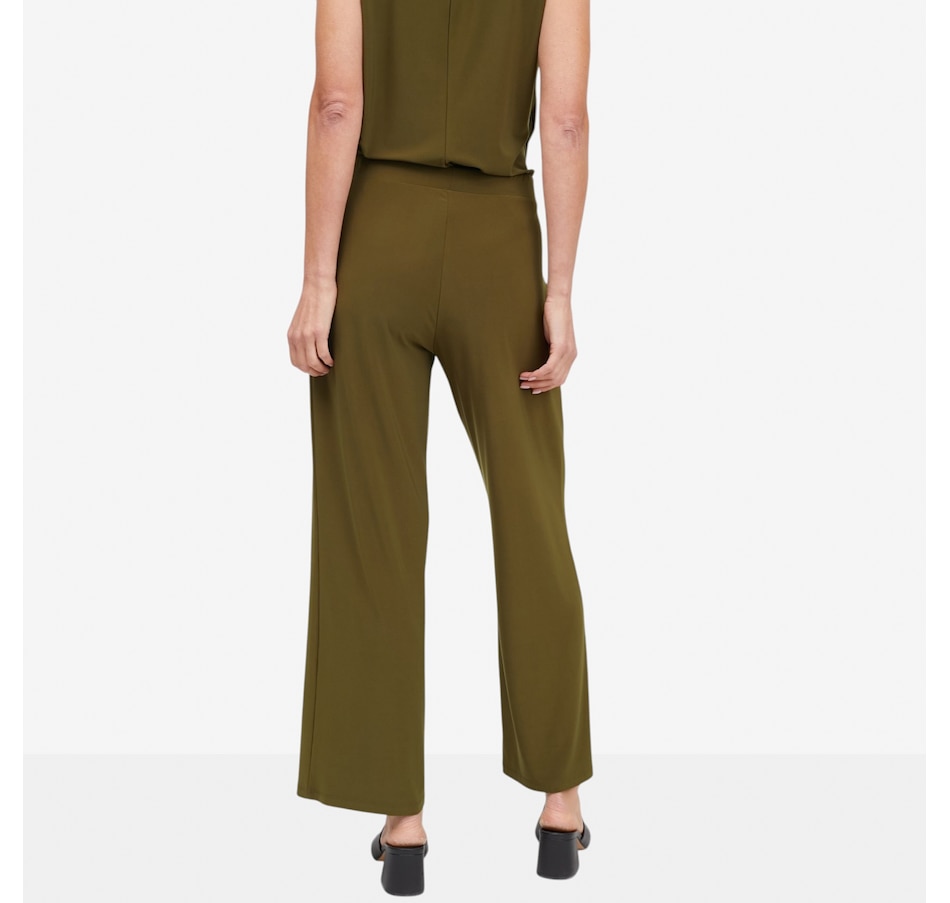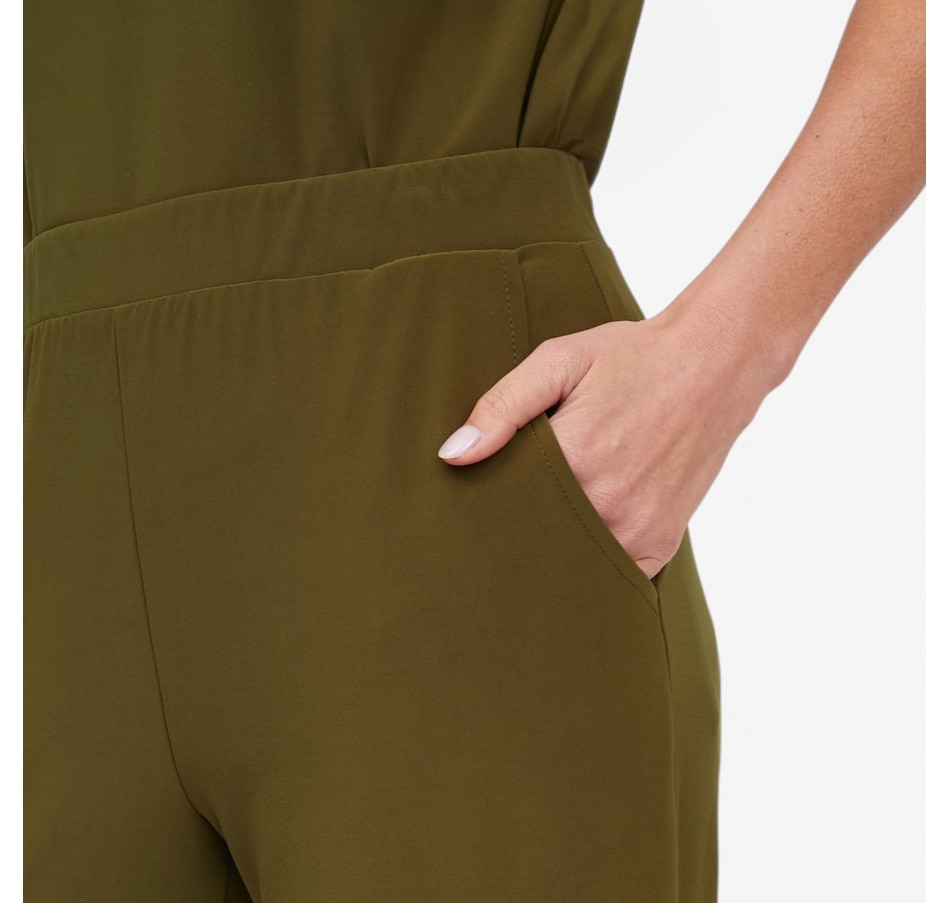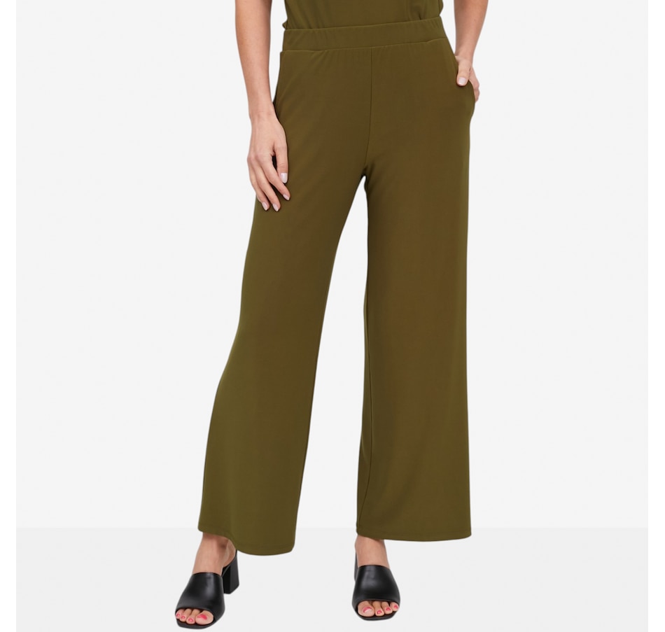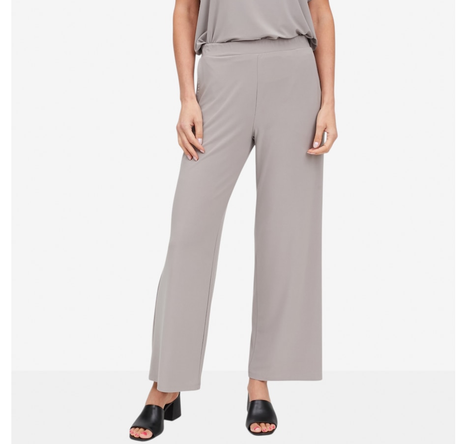 Slip into effortless confidence with the Ruffino knit wide leg pant from Carrie O, an ultra‑flattering essential designed for comfort, sophistication, and movement. Crafted from an elevated matte jersey, these pants offer exceptional fluidity, stretch, and recovery, gliding smoothly over the body while maintaining a polished drape. The no‑twist pull‑on elastic waistband allows for a secure and comfortable fit, while practical pockets add everyday versatility. With a mid‑rise waist and a modern wide‑leg silhouette, these pants deliver a refined, elongating look that goes beautifully with your favourite tops.