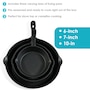 - Set includes 6", 7", and 10" cast iron skillets
