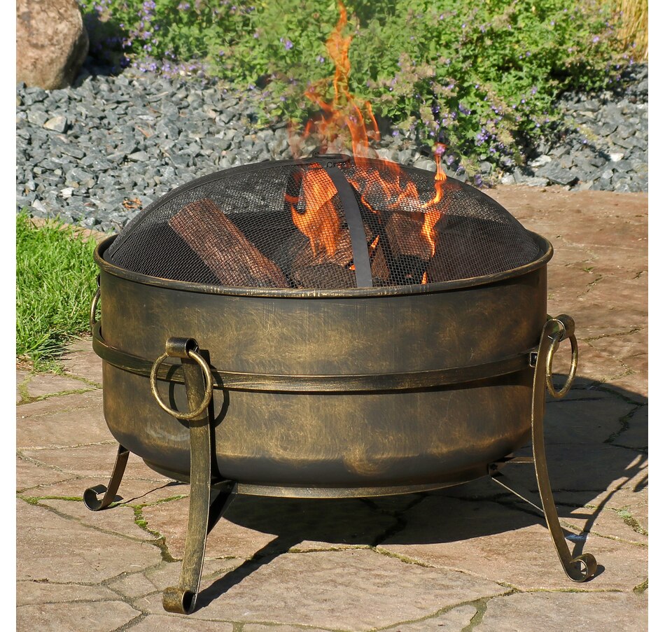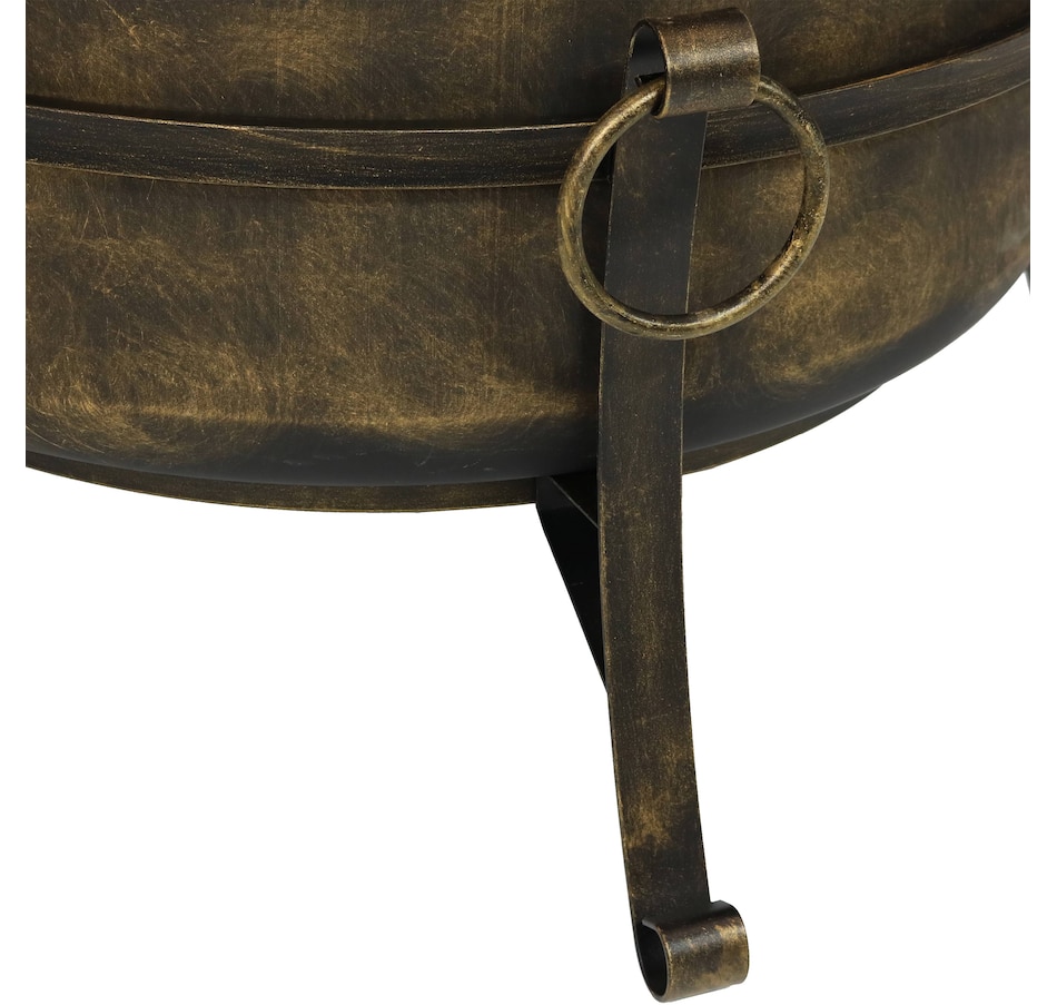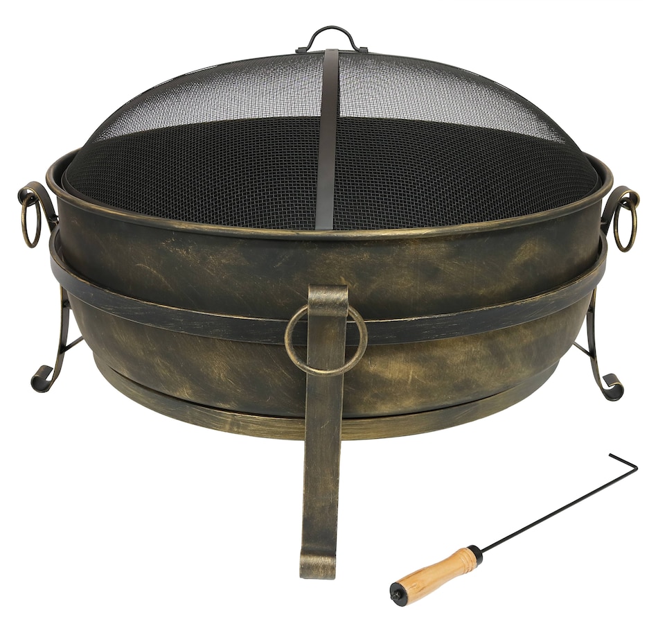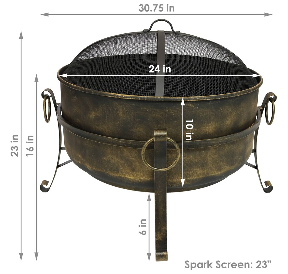 This steel, cauldron-style outdoor firepit with an included spark screen is sure to be a stunning centerpiece on any patio, yard, campsite, or other outdoor space. With its decorative legs, built-in wood grate, durable steel construction, and an attractive bronze finish, this fire bowl for outside is sure to be a hit among all your friends and family. The built-in wood grate allows for wood to sit comfortably while creating convenient air circulation all night long. Use the poker to easily maneuver wood and keep the fire burning all night long or use it to lift up the spark screen when it's hot. Create the fire pit space of the year! This firepit for outside features a beautiful dark bronze finish on the bowl and legs for further heat resistance and added style. The eye-catching design and details this fire pit has to offer is sure to complement any backyard decor.