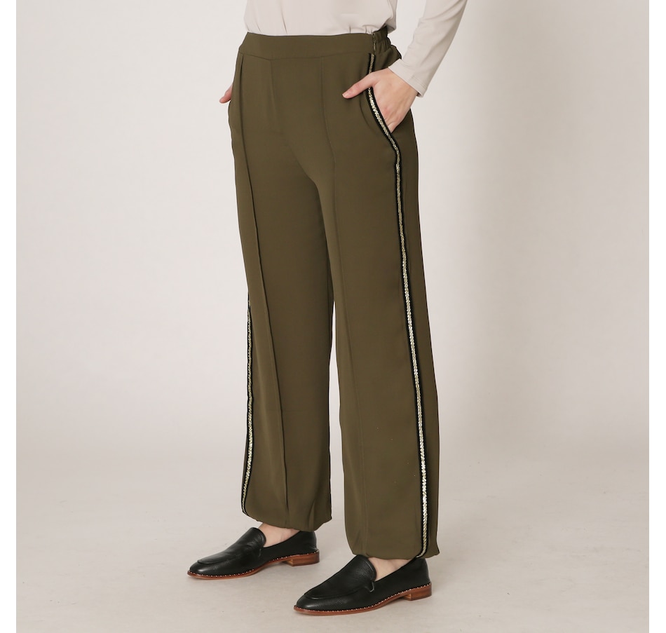 Add something decidedly elevated, and casual all at once, to your look with this fabulous race strip pant with ties from Celestial Blue.