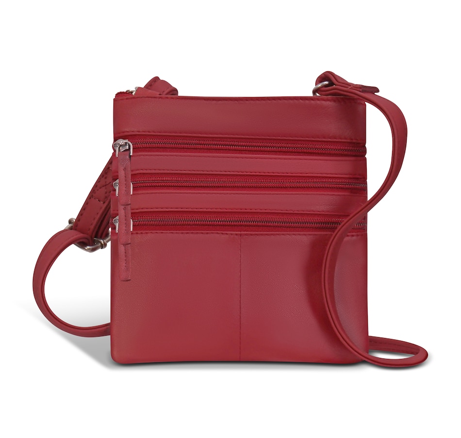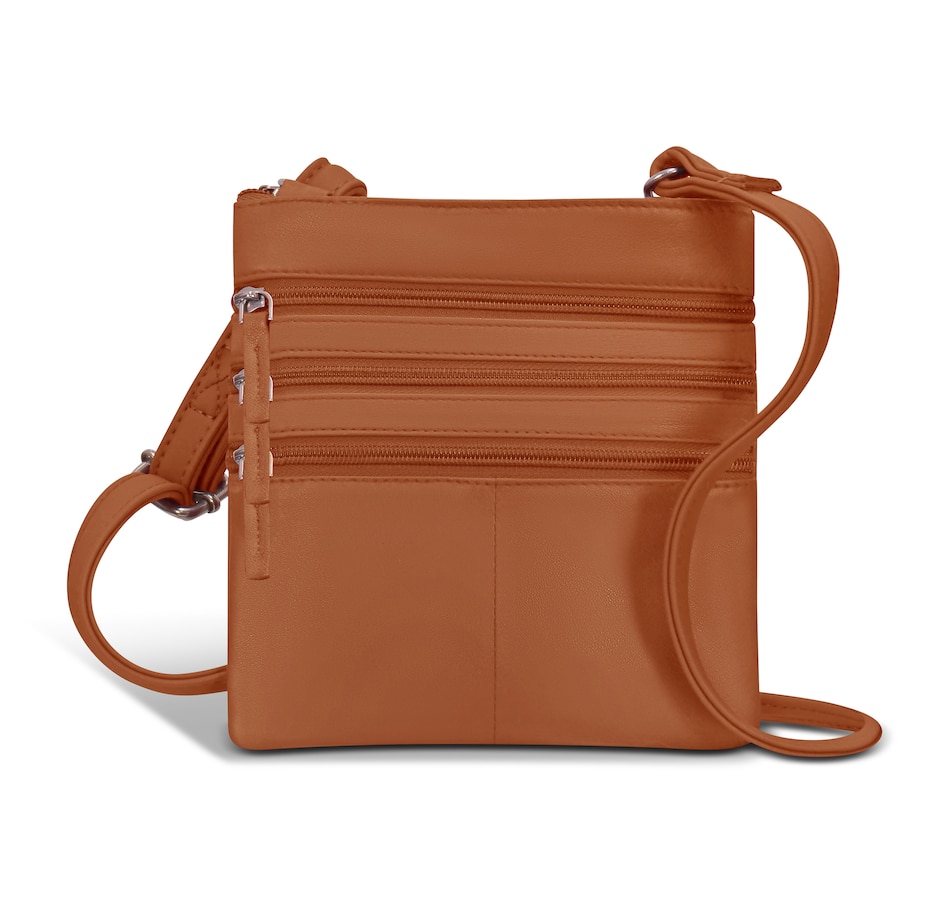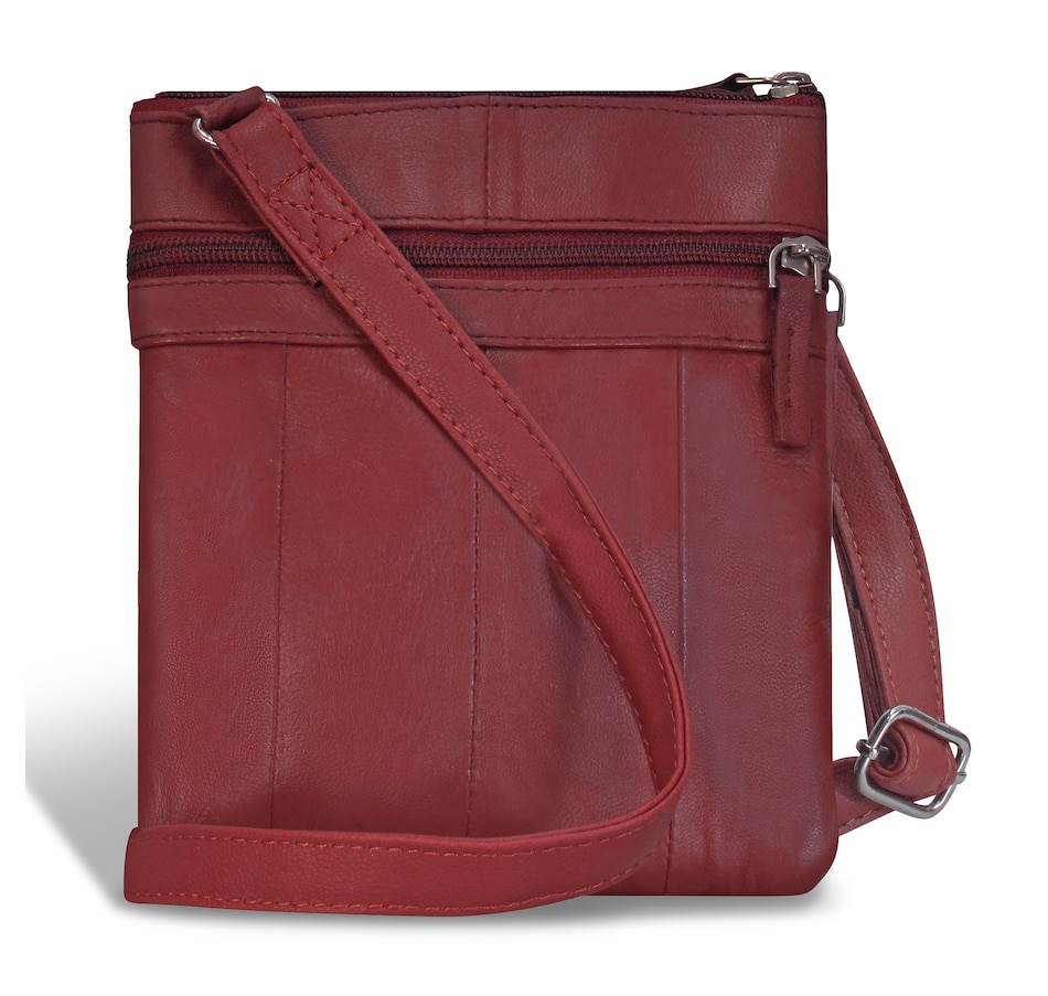 Introducing the Champs leather crossbody bag from the Classic Collection, a timeless blend of style and functionality, and crafted from genuine leather. This bag features a secure top zip closure to keep your belongings safe. It includes triple front zipper pockets and a convenient back zipper pocket for easy access to essentials. The adjustable shoulder strap means comfort and versatility, accommodating different carrying preferences.