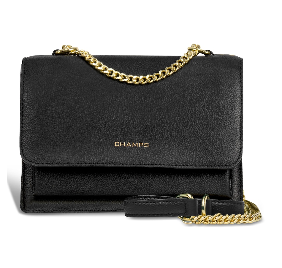 Discover the charm of the Gala Collection clutch shoulder bag from Champs, a must-have for your next special occasion. Made from buttery leather and featuring a chic gold chain, it's both elegant and easy-going. Inside, the plush signature lining pampers your essentials, while RFID protection helps keep things secure. Whether you're off to a fancy dinner or a milestone celebration, this bag is your stylish sidekick.