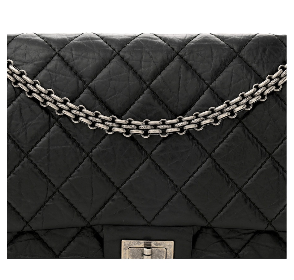 Few bags carry the cultural weight of the Chanel 2.55 Reissue. Originally introduced by Gabrielle Chanel in February 1955 and reimagined decades later, this iconic flap represents the full depth of the house's heritage. This example in black aged calfskin arrives with the intentionally distressed character that defines the Reissue line, where the leather is meant to develop a lived-in beauty from the very first wear. The Mademoiselle turn lock, the burgundy interior, the double chain strap — every detail is exactly as Chanel intended.