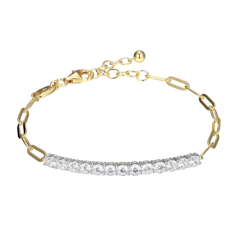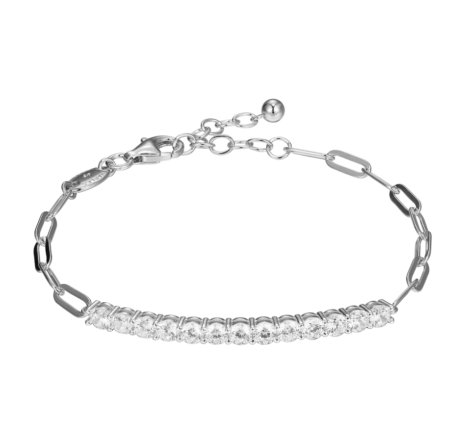 Sterling Silver Paperclip Cubic Zirconia Bar Bracelet