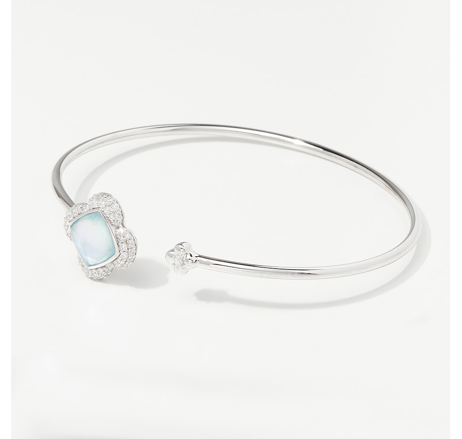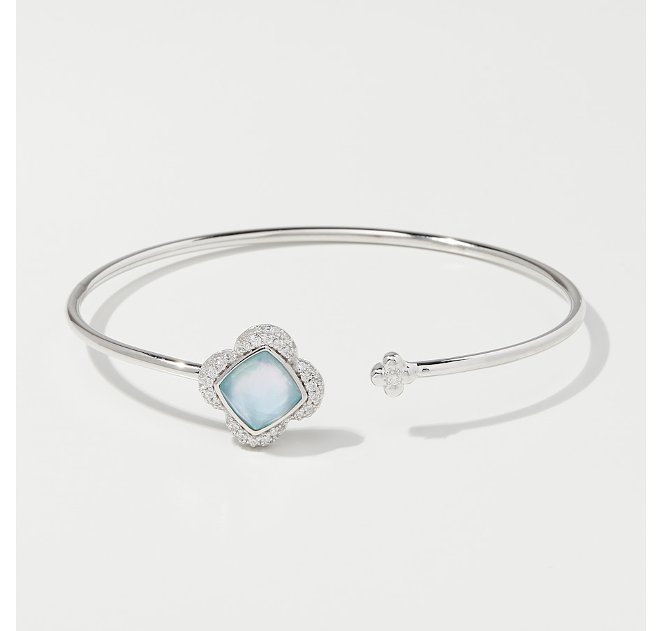 Sterling Silver Rhodium Plate "Bliss" Mother of Pearl, Synthetic Turquoise Crystal Doublet and Cubic Zirconia Cuff