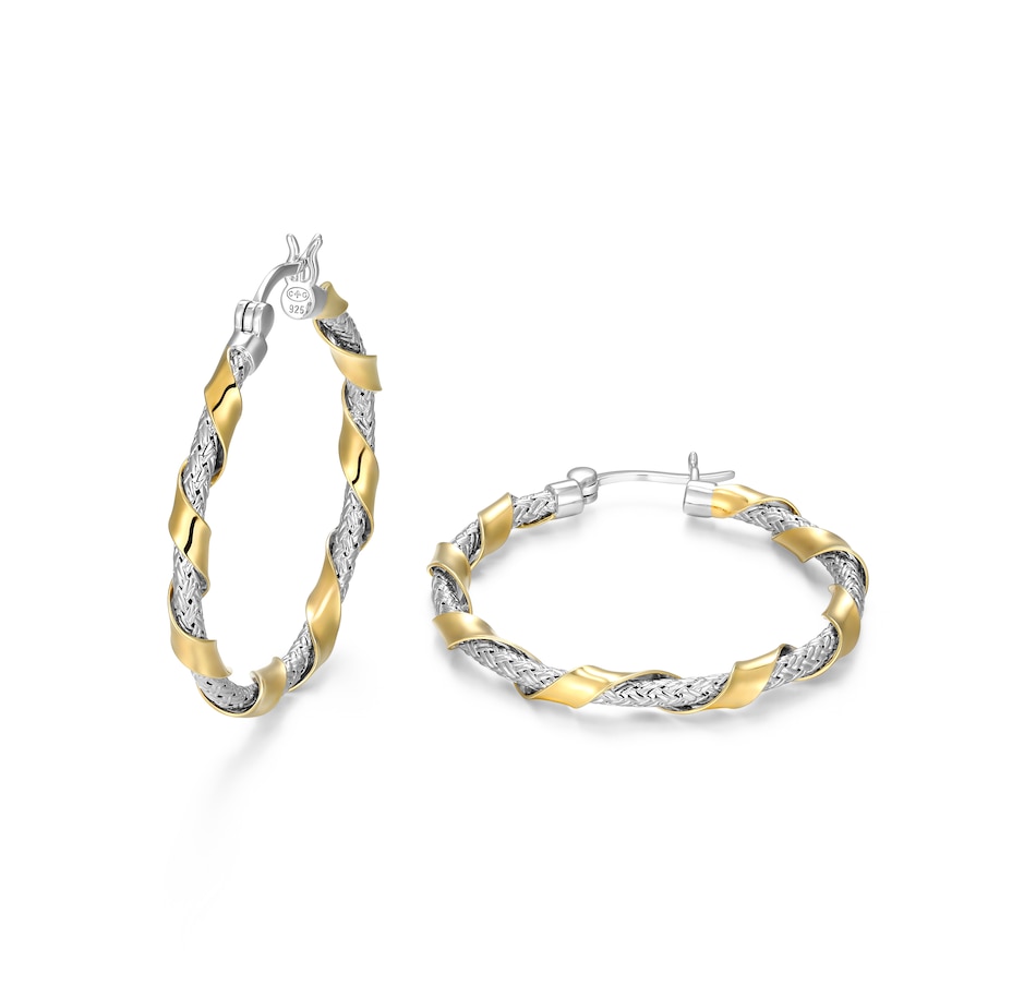 Charles Garnier Sterling Silver Two Tone "DUO LUXE" Twist Wrap Hoop Earrings