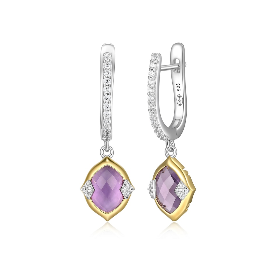 Two-Tone Genuine Amethyst and Cubic Zirconia Earrings