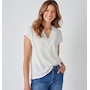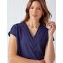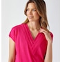 A summer staple with a flattering cut, this elevated deep v-neck tee is a dream to style and layer. This chic dolman short sleeve top is made from a super soft natural rayon blend and features an easy fitting silhouette and triple v-neck.
