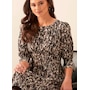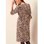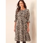 This dynamic animal inspired print in an elegant crew neck dress from Charlie Paige features an empire yoke waist and three quarter gathered sleeves with a ruffled edging. It all comes together in a slim fit silhouette with a flowy gathered skirt. This gorgeous Euro dress is an ideal selection for coming holiday events.