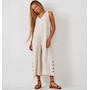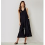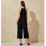 Elevate your summer closet with this chic off-duty tank jumpsuit. Made from a soft, breathable, and natural rayon linen blend, it features tie back adjustable straps, large side pockets, and a flowy capri length wide pant leg with button side slits for a breezy coastal aesthetic.