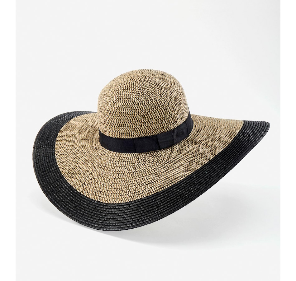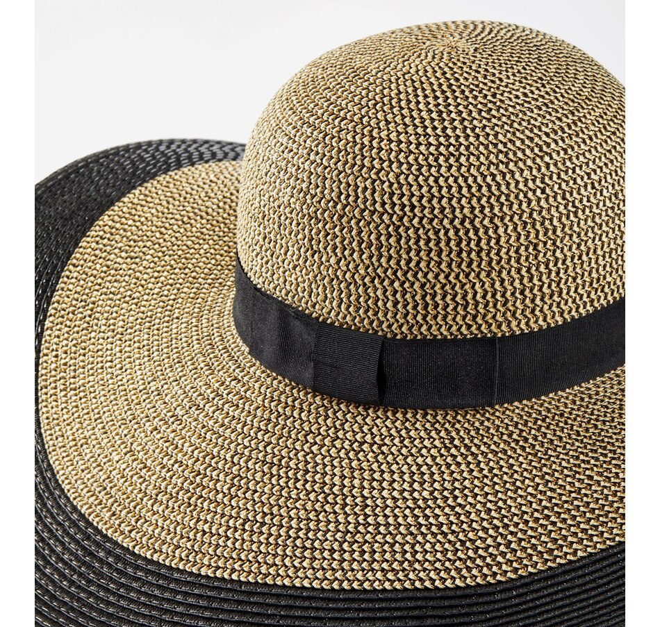 Elevate every summer outfit with this elegant two-tone adjustable wide-brim straw hat. With a stylish floppy design that provides sun-blocking coverage and breathability at the same time, it features a romantic oversized shape crafted from lightweight paper straw with a black band and black brim accent.