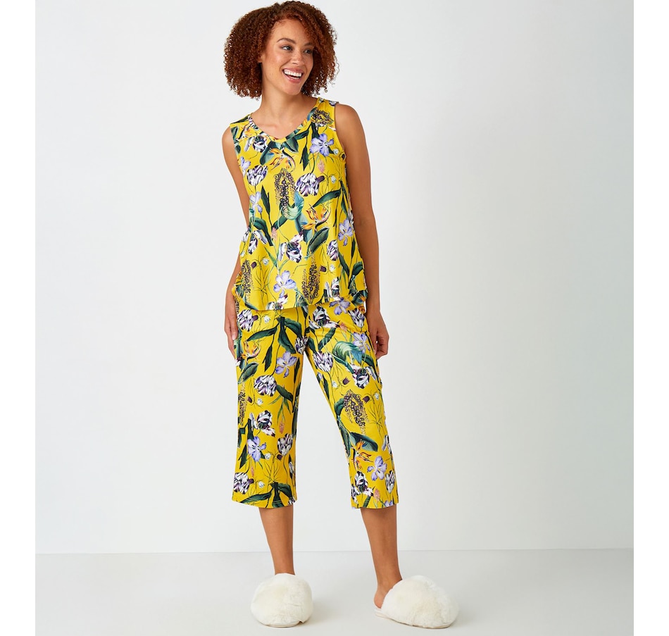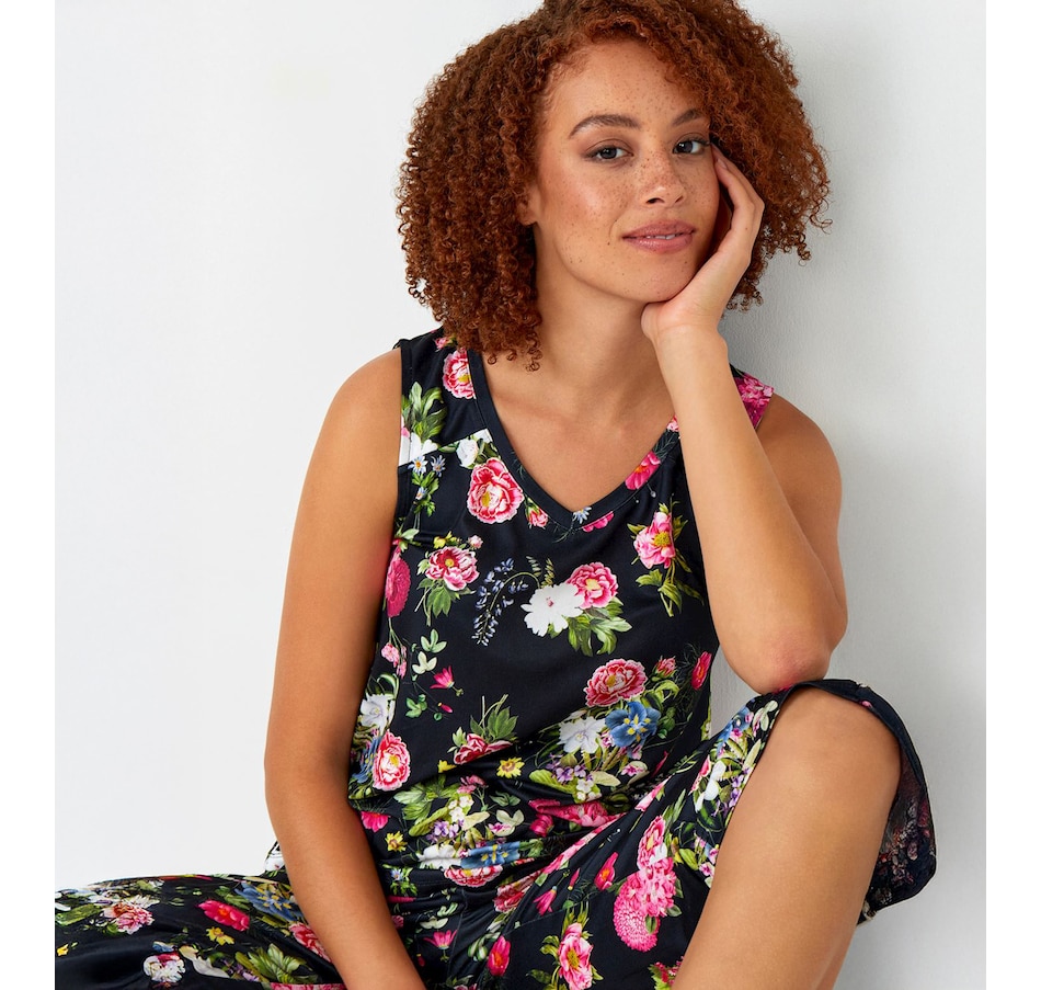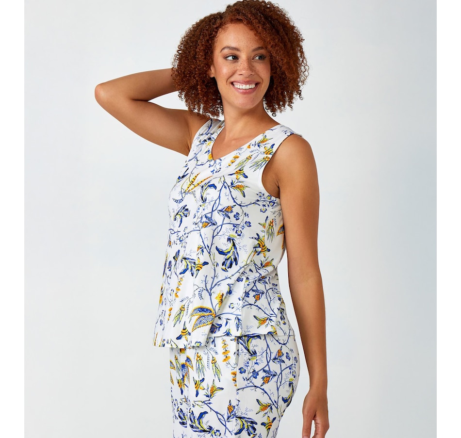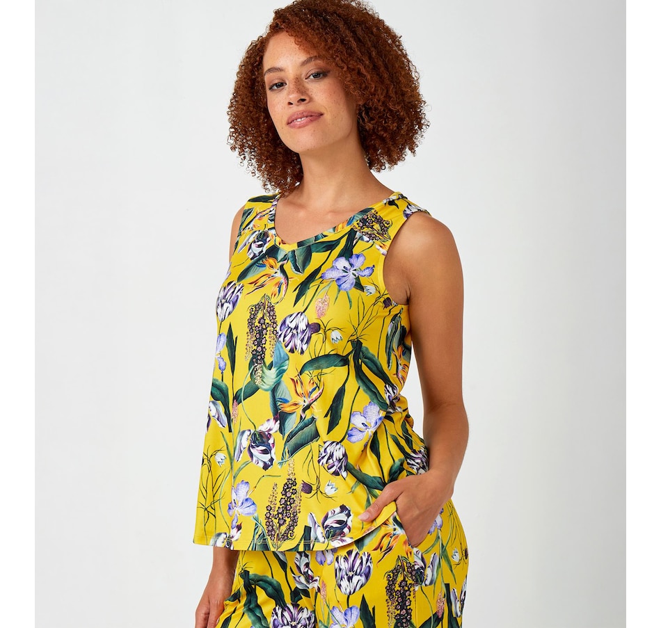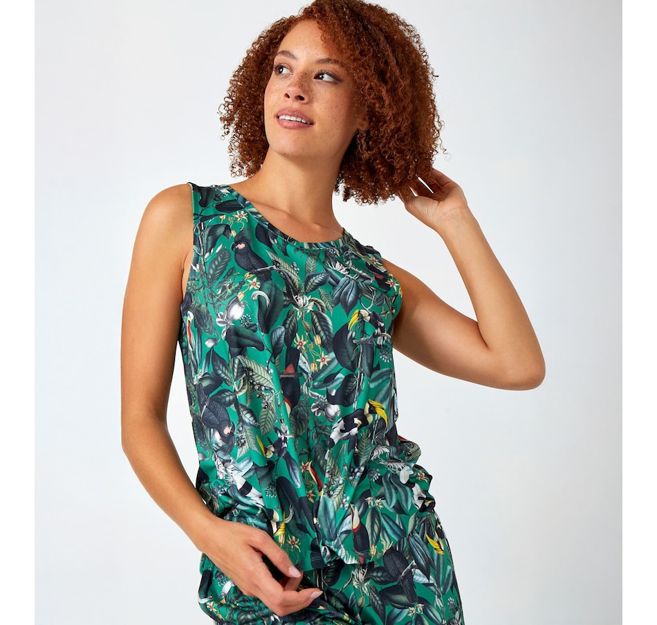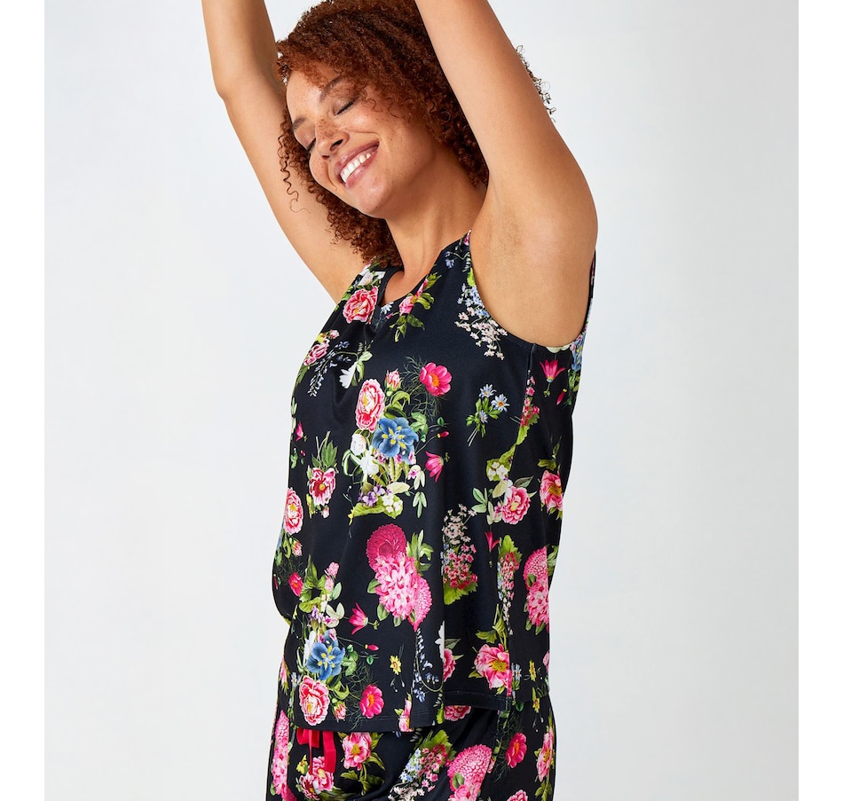 This v-neck print tank top from Charlie Paige is made from a breathable, super-soft stretchy fabric and features an a-line silhouette for an easy relaxed fit and a vibrant print. Available in a great selection of colours, this tank can double as a lounger or as pajamas.