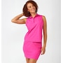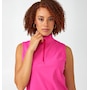 Stay active in comfort and style with this zip neck sport tank top from Charlie Paige. Crafted from a breathable four-way stretch knit high tech fabric, this lightweight hip length top features a mock neck with a zip collar, and a lightly shaped silhouette for a body skimming fit.