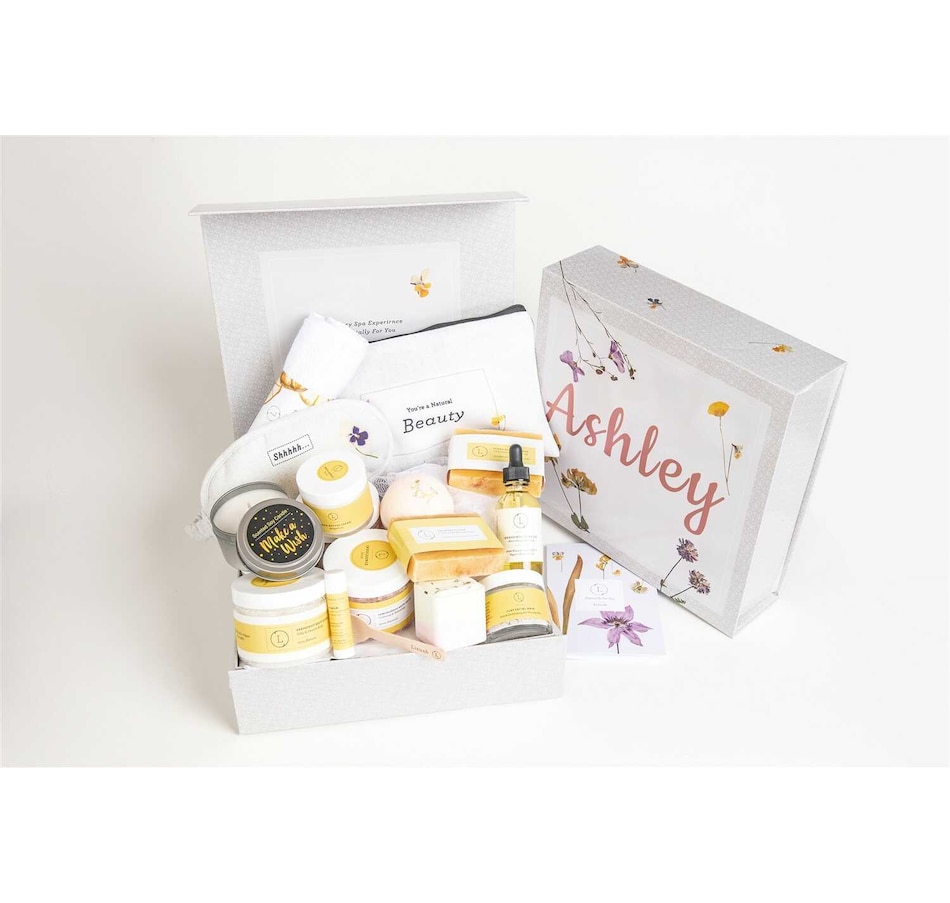 Send a thoughtful get-well gift basket to someone you care about. Our get-well-soon box is guaranteed to make their day brighter!This Citrus Bath gift set includes:Citrus SoapNaturalBar (4oz) Ylang Ylang Orange Natural Soap Bar (4oz) Grapefruit Body Scrub (9oz)CitrusBath salt jar (9oz) Large Bath Bomb Eye mask Cosmetic bag Large Shower steamer (2" diameter) Clay Facial Mask (1oz, several uses) Grapefruit Shea butter (2oz) Grapefruit Body oil (2oz) Lip balm Scented candle (4 oz) Sponge / Soap saver Face towel Gorgeous box. Make it special and add a name on the lid Your personal note printed free on a beautiful greeting cardGift this care package to convey your warm wishes of a speedy recovery to a friend, family member, or loved one.Show them they are on your mind with this ultimate 'Care Package'.Personalize your box: You can choose to add the Recipient's Name on the lid in rose gold lettering to make it more personal for a small extra cost. Gift message: During check out, on the cart page, enter your personal message to the recipient. Shipping: -Please choose between free shipping (5-7 business days) or expedited shipping (2-4 business days) during check out. - Orders placed after 5 PM PST will be shipped the following business day. Ship it directly to the recipients: During checkout change to the recipient's shipping address.At Lizush we believe that you deserve the best!Working hard all week and taking care of your family and loved ones? It's now time that someone else should take care of you!We, therefore, created All Natural products with you in mind:* High-quality all-natural materials.* We use only natural colorant made from spices and herbs* We use only high-quality essential oils for scentOur goal at Lizush is to make you feel good and look your best!