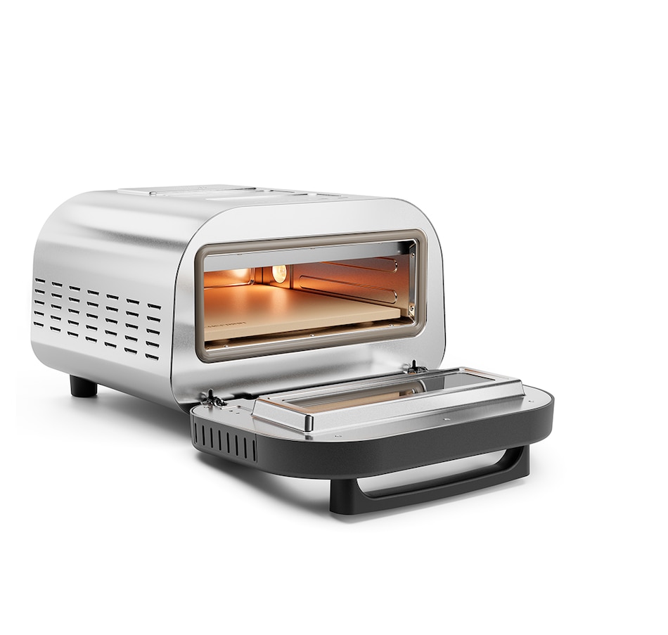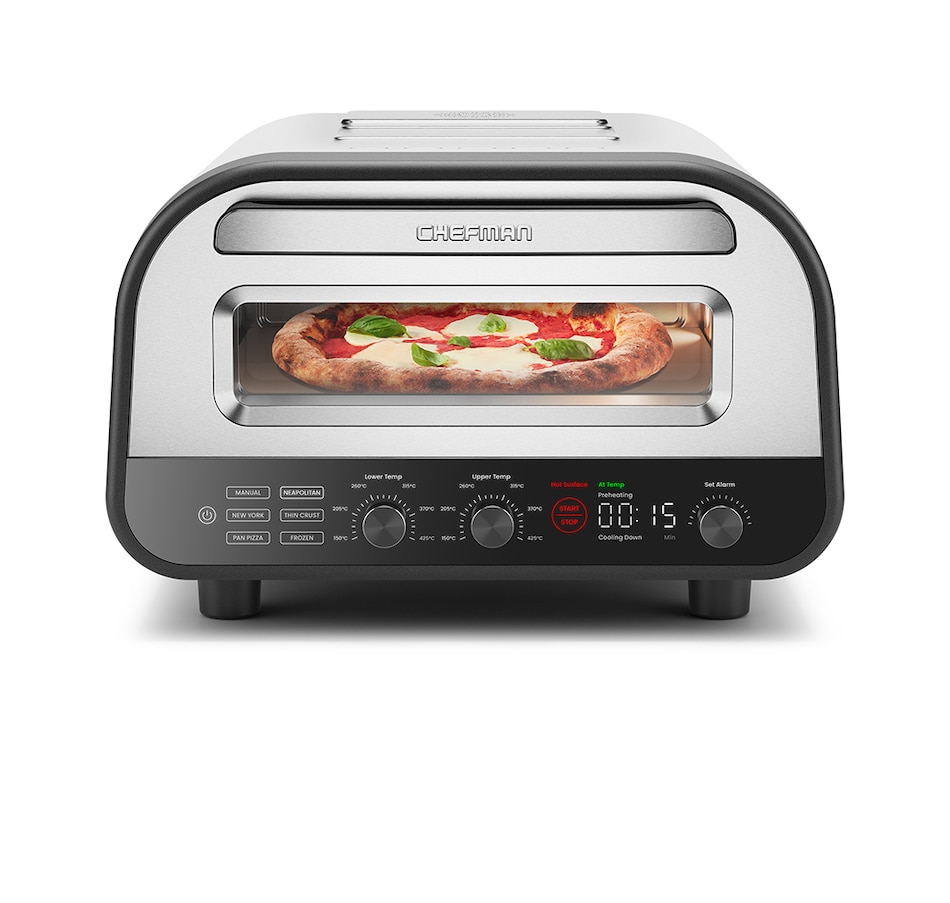 This creation by Chefman cooks a 12-inch pizza in minutes. It features five pizza presets, a dual pane window, and easy-to-use intuitive digital controls. It operates efficiently with its heat-retaining design and a handy interior light to check on your delicious creations' progress.