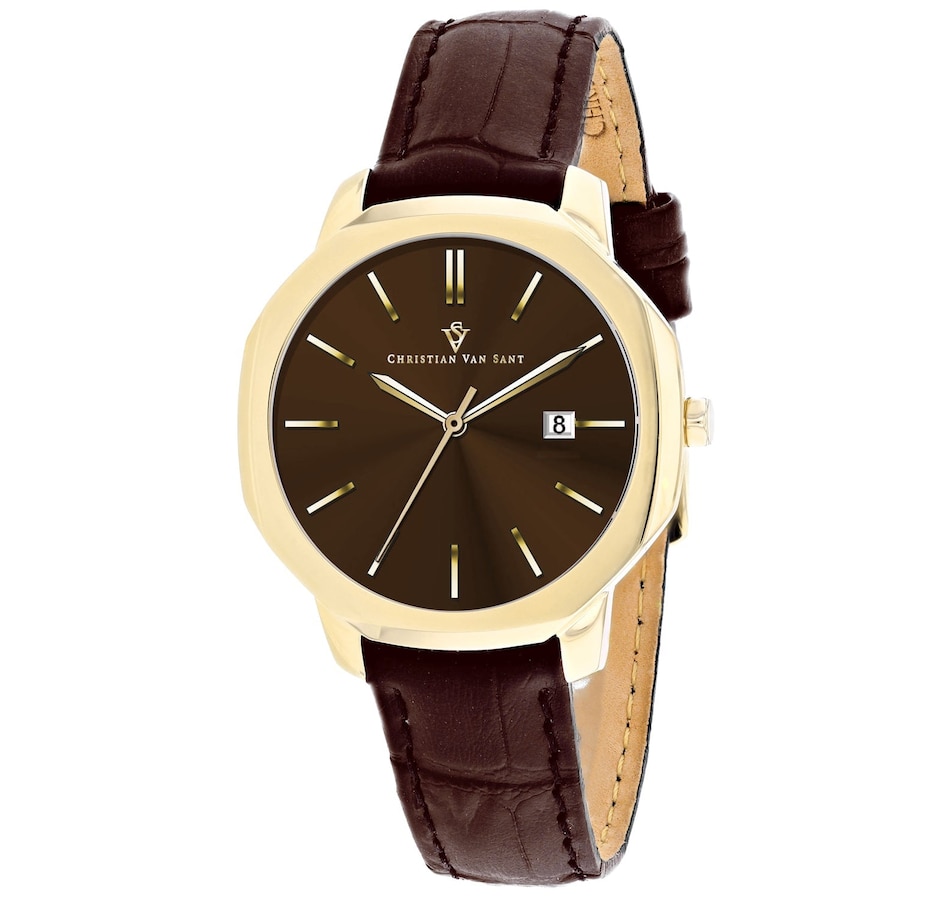 Stainless steel case, Leather strap, Brown dial, Quartz Movement, Scratch resistant mineral, Water resistant up to 3 ATM - 30 meters - 100 feet