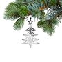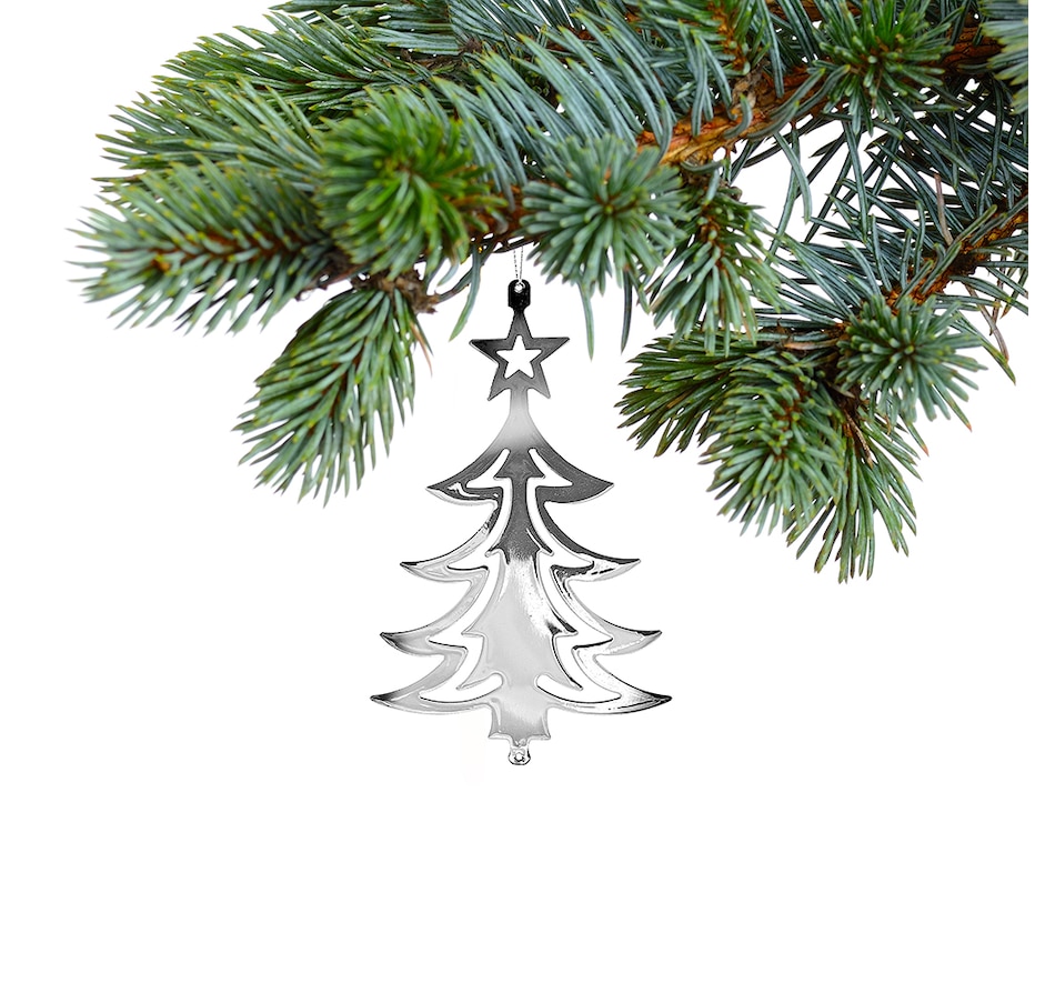 Welcome the festive season with this flat silver-coloured tree ornament. This high-quality ornament is made from metal and comes with a loop on top so you can hang it on a wall, door or Christmas tree.