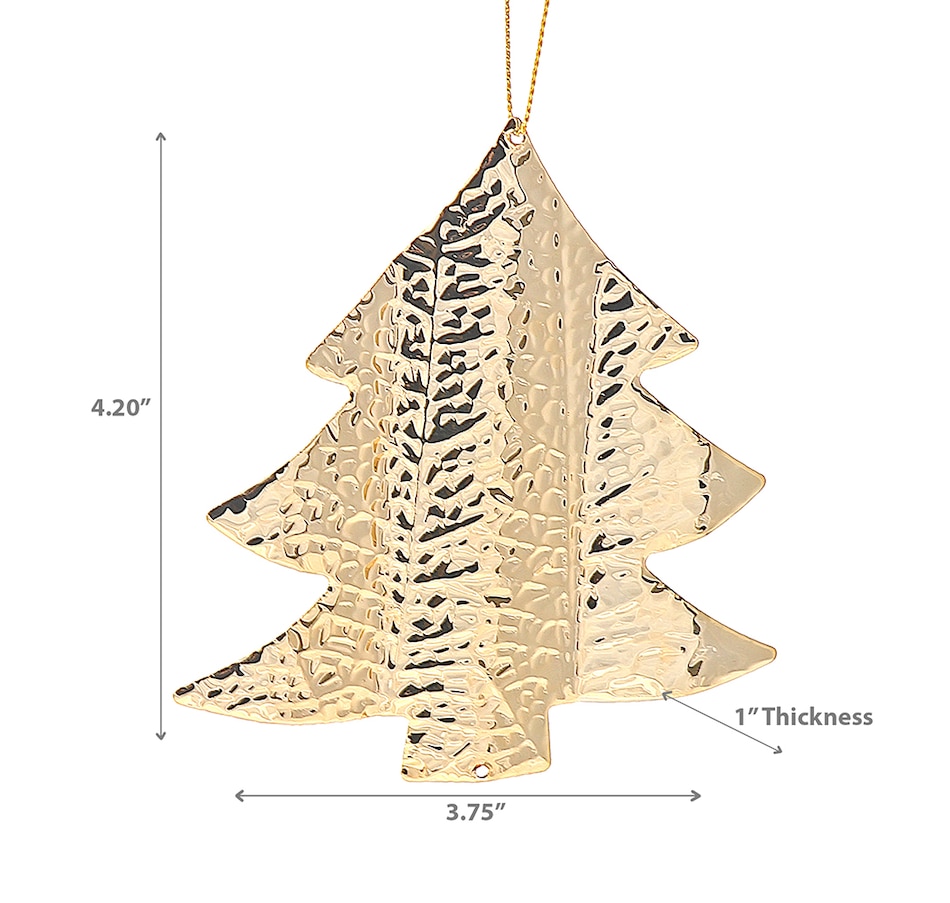 Accentuate your home with this tree-shaped, hammered-metal ornament. With the loop on the top, this high-quality ornament can be easily hung on the wall, the door and the Christmas tree. It also comes with textured detailing all over, making it a unique piece of home décor.