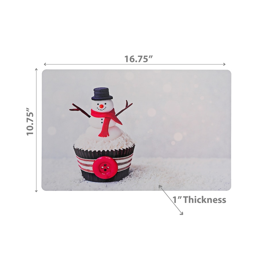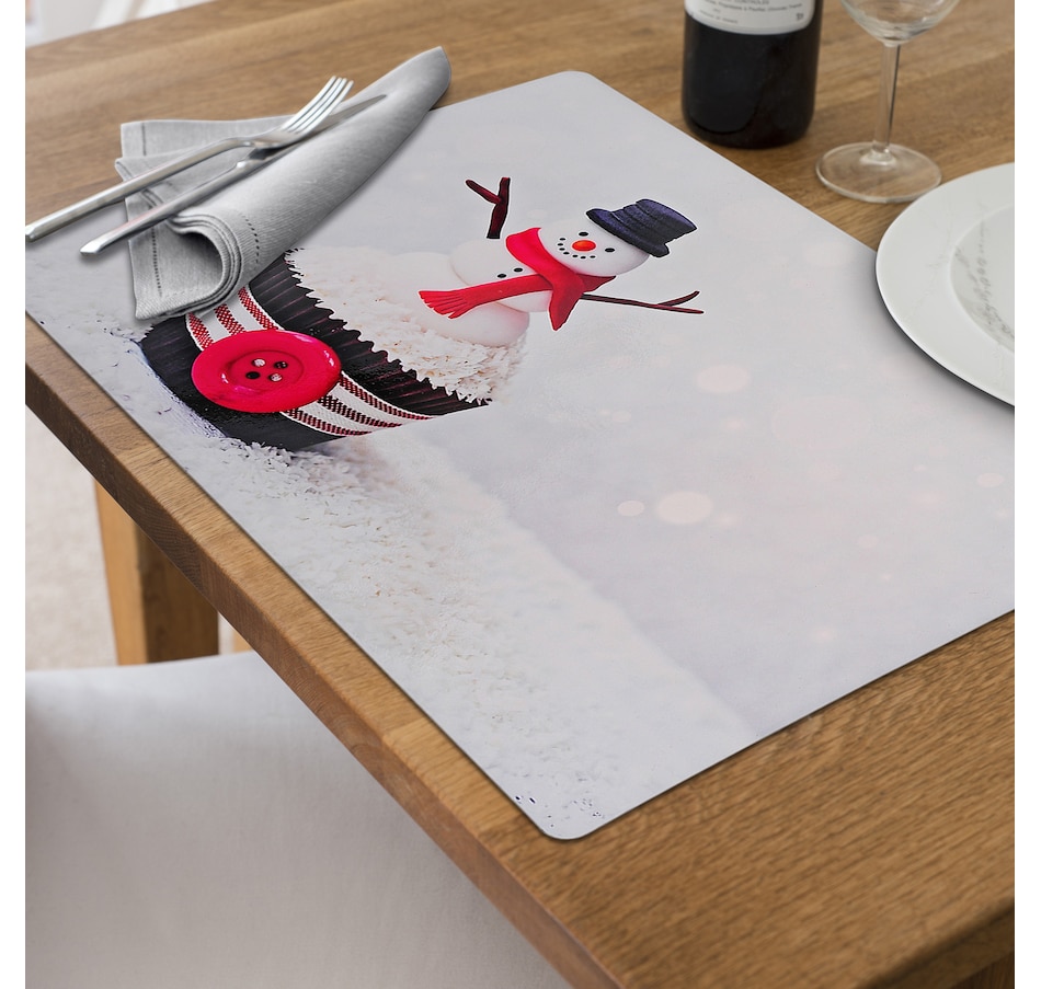 Design: The plastic placemat with snowman cupcake artwork for dining table decor is sold per piece.