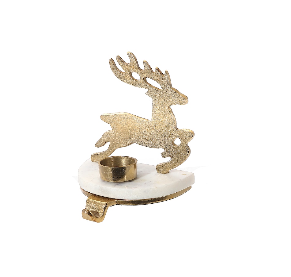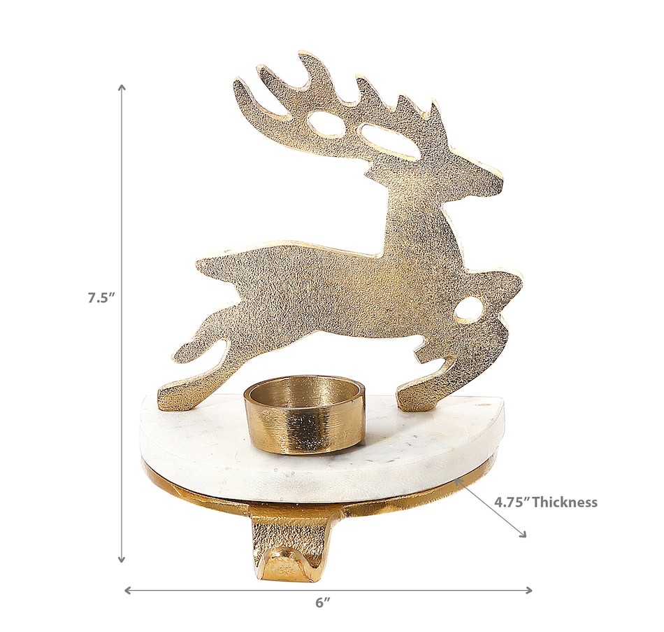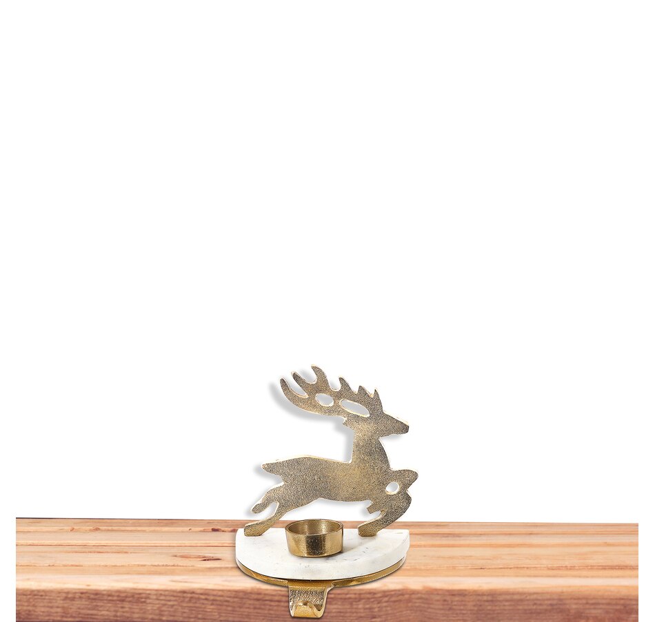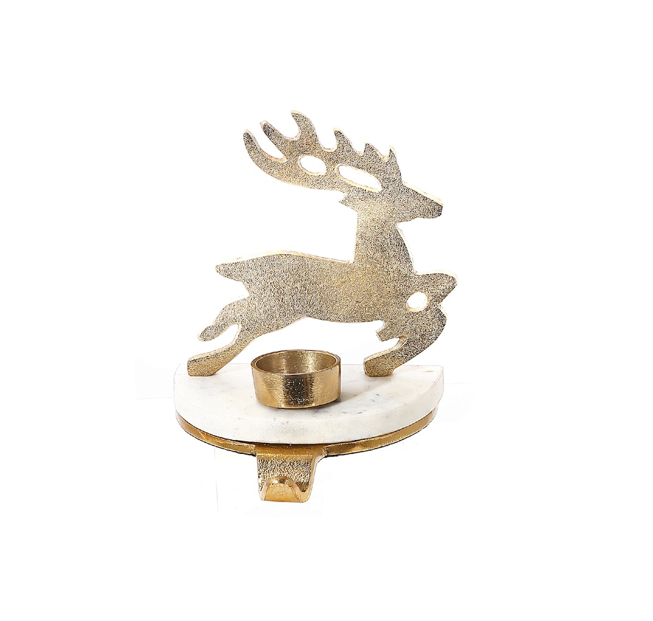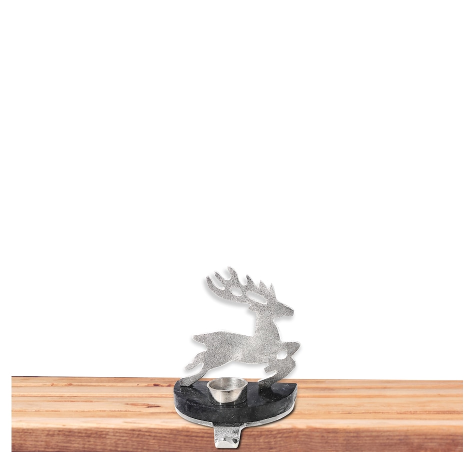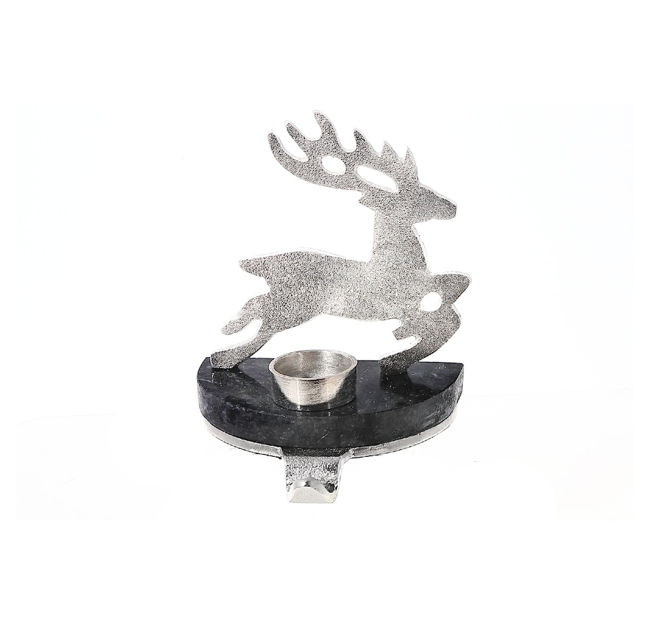 Design: Metal & Marble Reindeer With Tealight Stocking Holder (Silver)