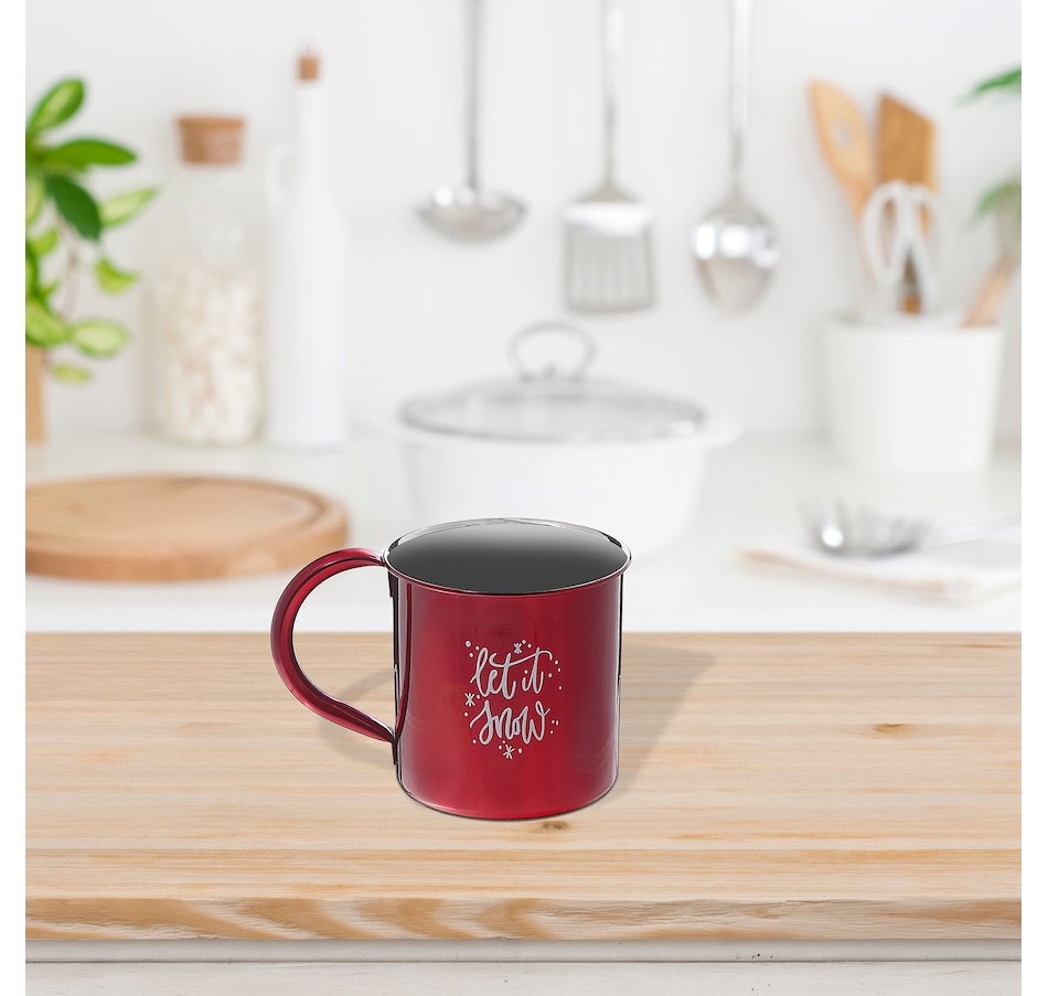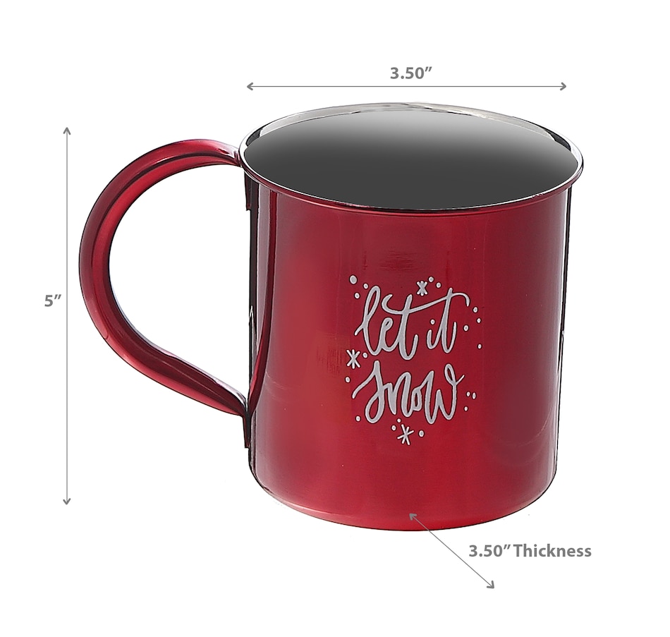 If you're looking for a stylish and durable mug, look no further than the stainless steel mug with printing that has left it snow. It is made of high-quality stainless steel that can withstand the wear and tear of daily use. This durable stainless steel mug complements all kinds of kitchen accessories such as stainless steel cups, stainless steel tumblers, etc. Plus, its sleek design makes it an ideal gift for friends and family who value practicality and aesthetic appeal. This item can be easily machine washed. Design: Stainless Steel Mug With Printing (LET IT SNOW) Material: Stainless steel Dimension: 5 L× 3.50 W× 3.50 H inches Use: Ideal to be used as a kitchen accessory Care: Wipe clean with a damp cloth