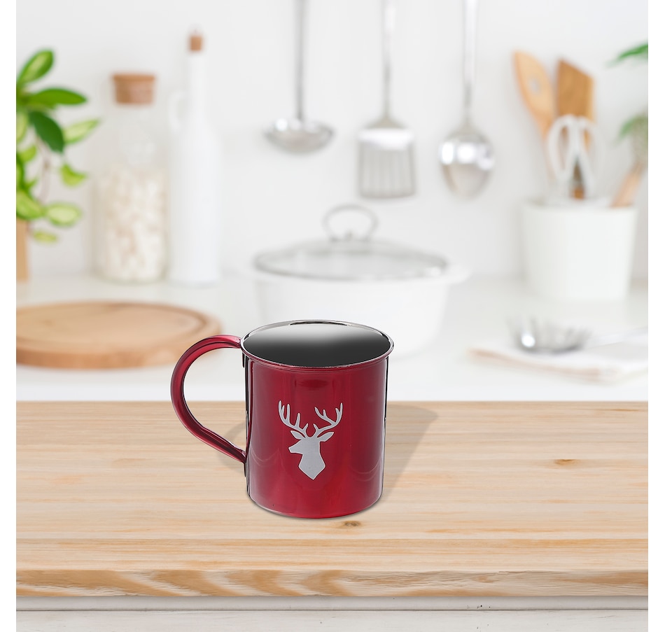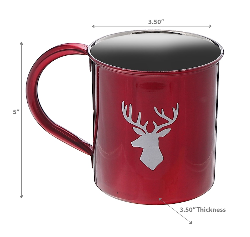 If you're looking for a stylish and durable mug, look no further than the stainless steel mug featuring a reindeer print. It is made of high-quality stainless steel that can withstand the wear and tear of daily use. This durable stainless steel mug complements all kinds of kitchen accessories such as stainless steel cups, stainless steel tumblers, etc. Plus, its sleek design makes it an ideal gift for friends and family who value practicality and aesthetic appeal. This item can be easily machine washed. Design: Stainless Steel Mug With Printing(Reindeer) Material: Stainless steel Dimension: 5 L× 3.50 W× 3.50 H inches Use: Ideal to be used as a kitchen accessory Care: Can be easily machine washed.