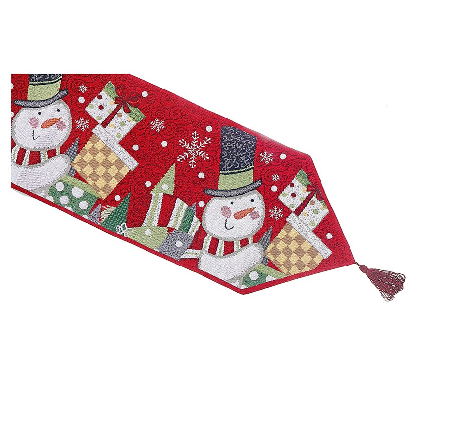 • Christmas Tapestry Table Runner Snowman Holding Presents 54"