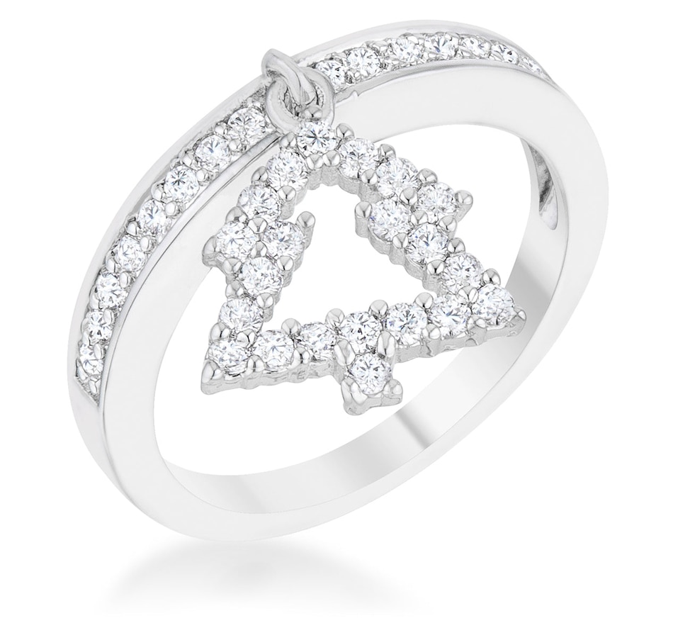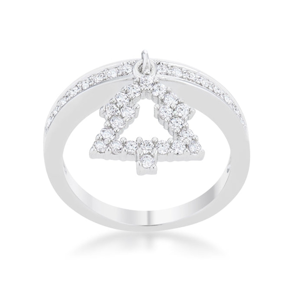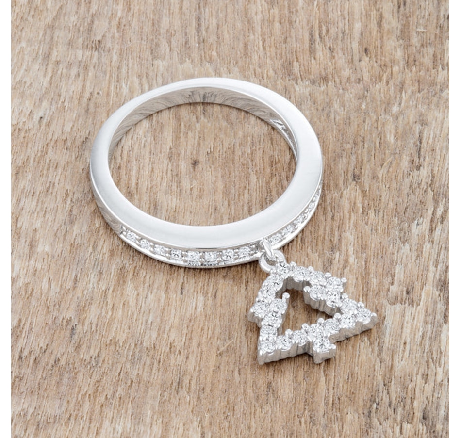 A simple Christmas tree charm delicately hangs from a simple eternity band in this charming holiday piece. A subtle and chic way to embrace holiday festivities.