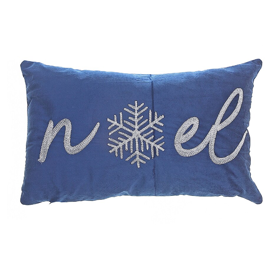Christmas Velvet Embroidered Cushion Blue Noel 20" x 12" (Set of 2)