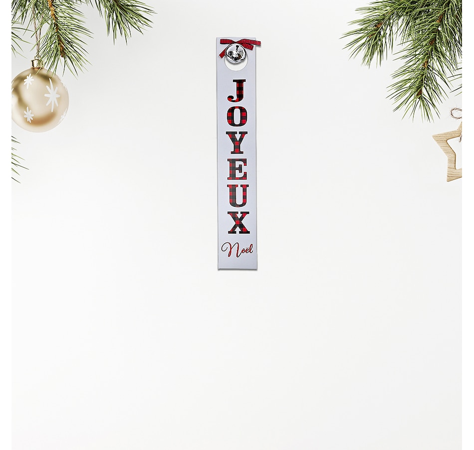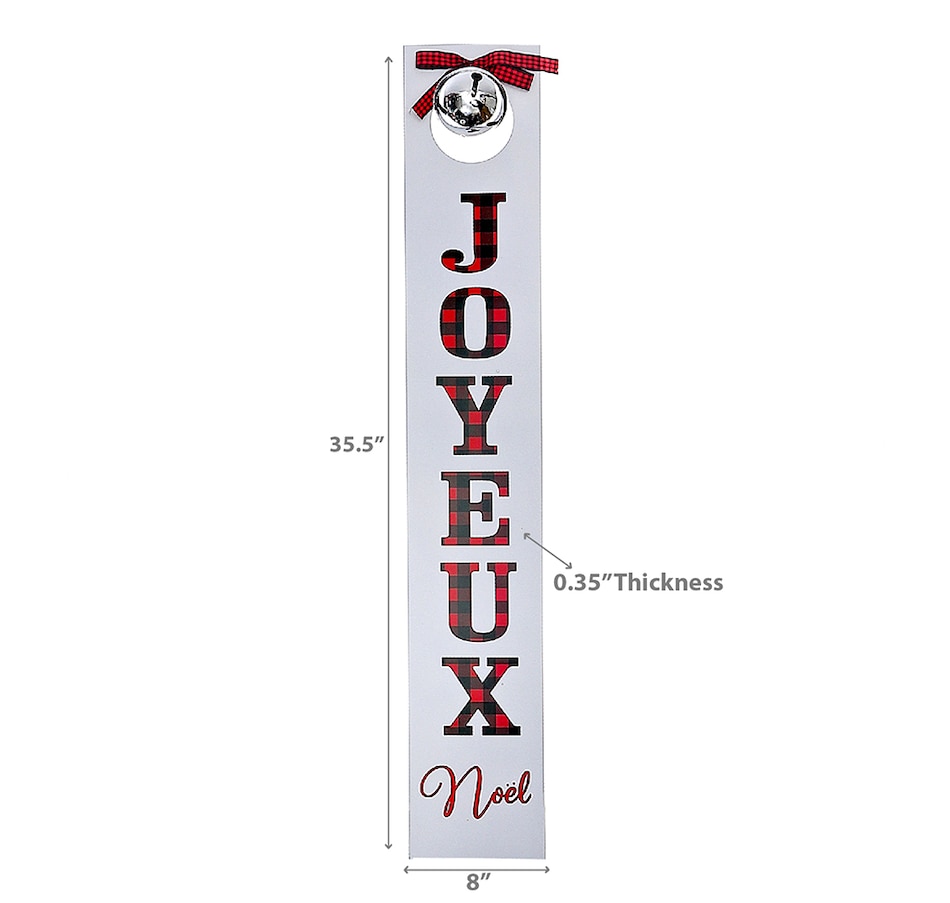 Welcome the holiday season with the Wood Vertical Sign with Bell (Joyeux Noel). This charming wooden wall decor features a rustic design, complete with a festive bell accent. Hang it on your door or wall to spread Christmas cheer. Crafted with care, this Merry Christmas sign adds a touch of warmth and joy to your home decor. Embrace the festive spirit with this delightful wooden wall decor.